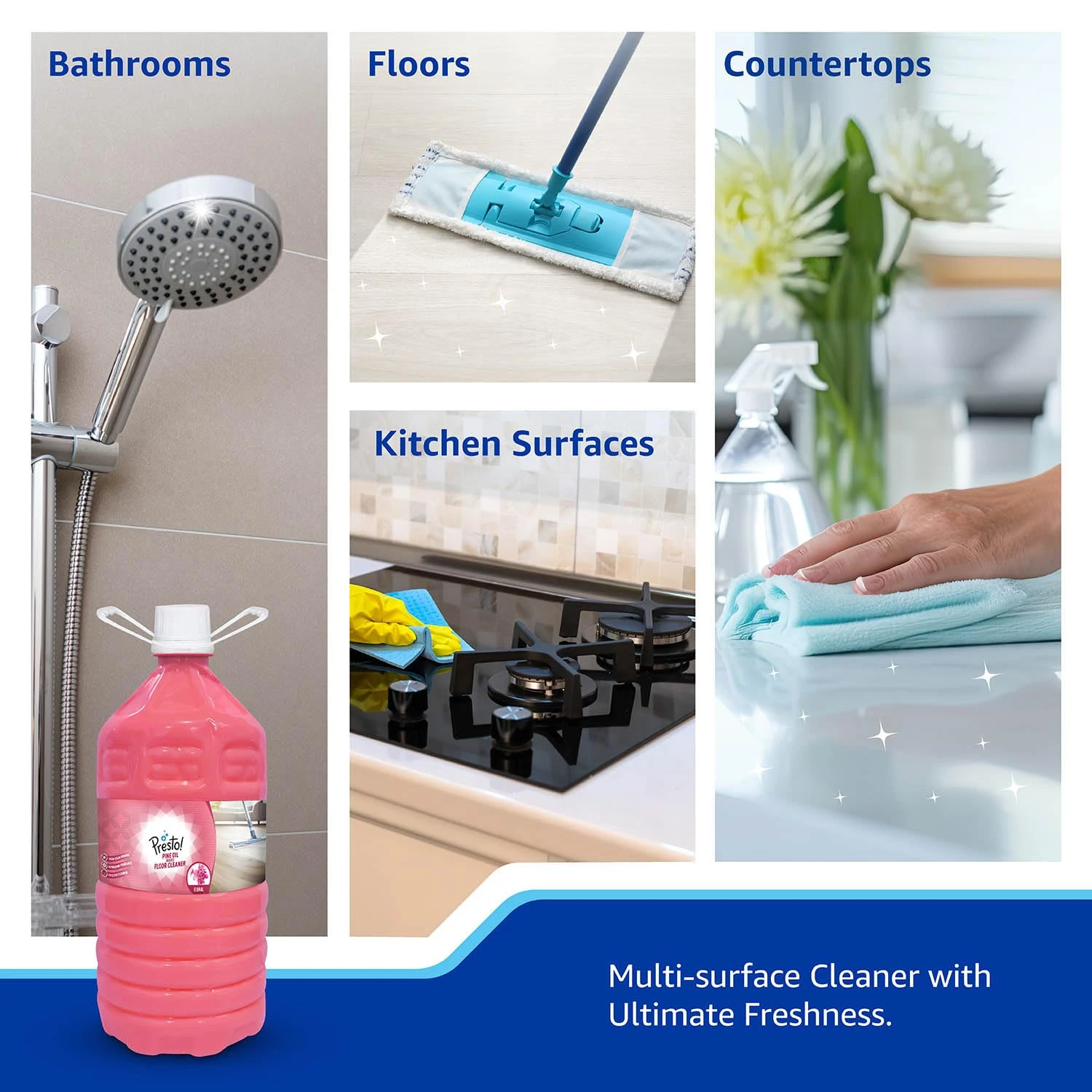 Amazon Brand - Presto! Surface & Floor Cleaner | 5 Litres | Floral Fragrance | Essential Liquid Cleaning Solution
