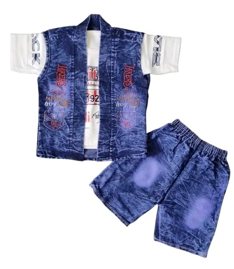 BETRAX Kids Denim Vest and Shorts Set, Blue Acid Wash, White T-Shirt, Casual Summer Wear