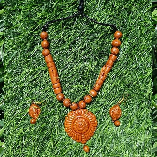 Terracotta Necklace Earrings Set for women and girls, Handmade Necklace Jewellery, Traditional Terracotta Jewellery Necklace Earring Set for party, occasion, Daily use