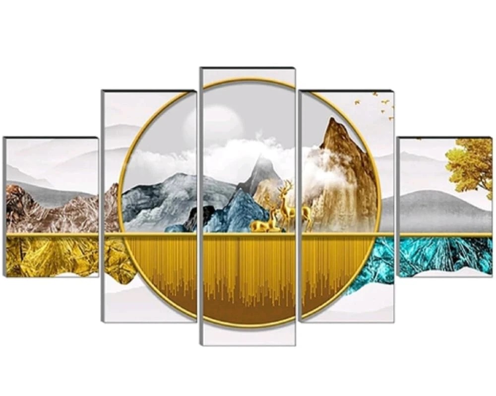 Bijon Sales Nature MDF Art Painting for Wall Decoration, 3d Scenery Vastu Painting for Living Room Large Size for Home Decoration, Hotel, Office 76.2 cm x 45 cm - Set of 5 (Nature 06)