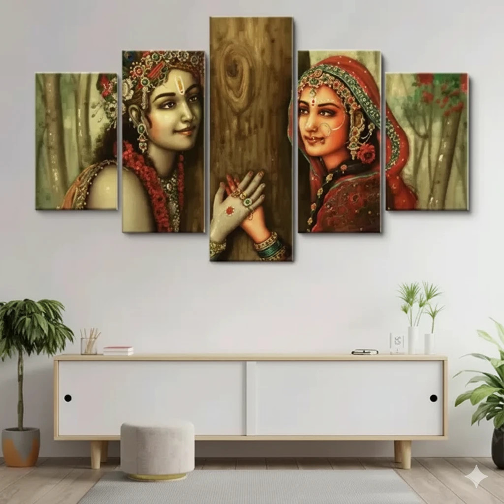 BJ Sales Radha Krishna 5 Piece Regilous Painting Wooden MDF Photo Frame For Bedroom, Hall, Living Room, Hotel, Office