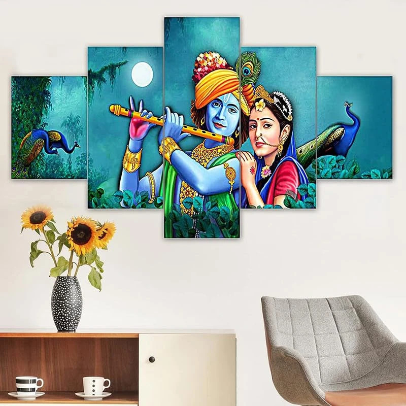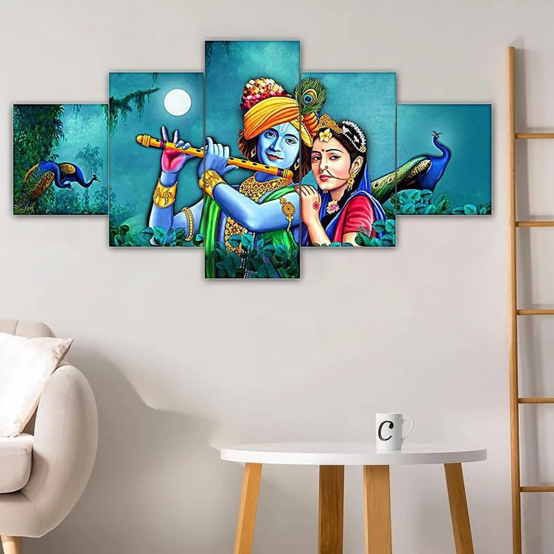 BJ Sales Radha Krishna Wall Paintings for Bedroom Set Of 5 3D Framed For Living Room Digital Reprint 17 inch x 30 inch Painting