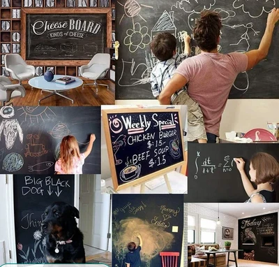 Turn any flat surface into a blackboard! Customize to any size or shape. Simply cut, peel and stick. Our premium chalkboard contact paper makes for a great alternative to chalkboard paint.