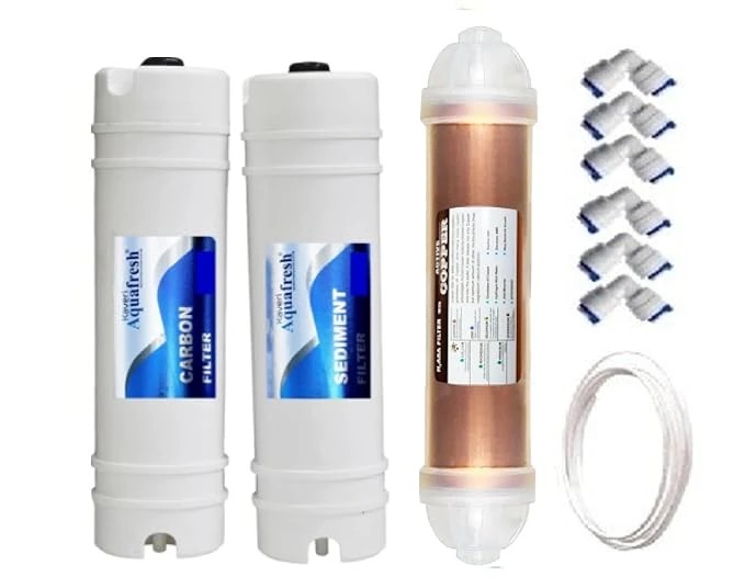 Comprehensive Filtration: This set includes a pre-carbon filter, sediment filter, and advanced copper filter, ensuring thorough removal of impurities, sediments, and harmful contaminants from your water supply. Advanced Copper Technology: The advanced copper filter not only purifies but also enhances the taste of your water, providing health benefits associated with copper-infused water. Universal Compatibility: Designed to fit all RO water purifiers, this filter set offers a hassle-free installation process, making it a versatile choice for any system. Durable and Long-lasting: Made with high-quality materials, each filter in this set is built to last, ensuring consistent performance and reliability over time.Invest in the Blue Pre Carbon Filter, Sediment Filter, Advanced Copper Filter, and Elbow Inline Filter Set today to ensure your water is as pure and refreshing as nature intended. Experience the peace of mind that comes with knowing your water is safe and healthy for you and your loved ones.