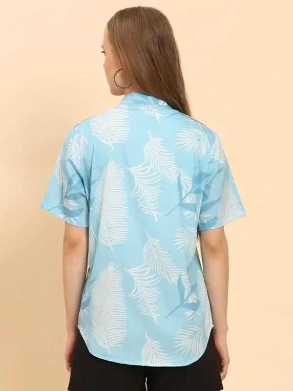 Blue Rayon Slub Chic Modern Women Shirt For Women