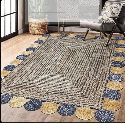 Enhance your home with the Braided Jute Area Rug with Circular Border, a stylish and sustainable choice that complements any decor while providing comfort and durability.