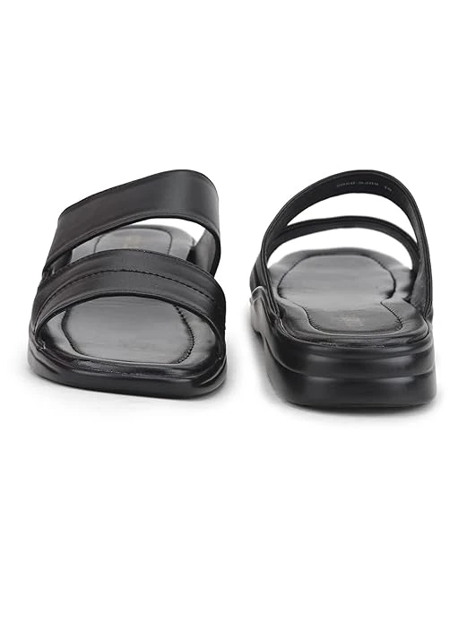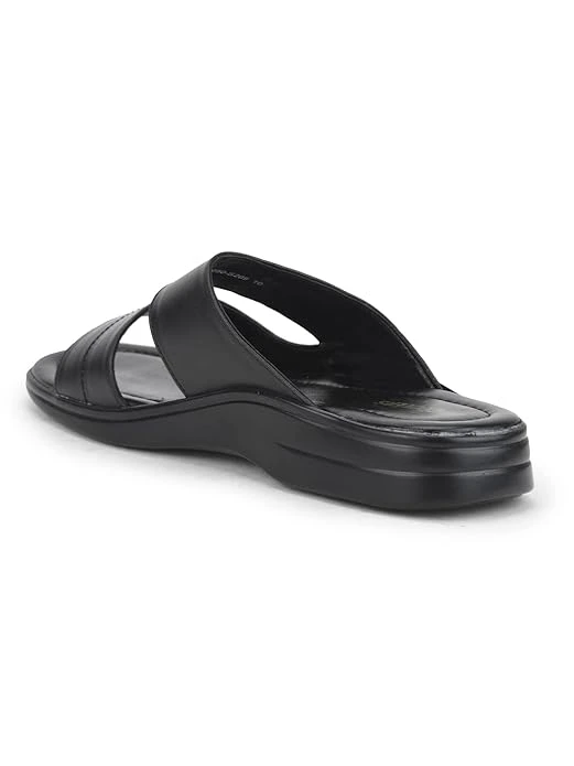 Built to match your formal wear as easily as your casual wardrobe, these slippers blend minimalist design with a classic silhouette. Their black matte finish and sleek sides give them a clean, elevated look ideal for professional settings. These liberty formal slippers for men bridge the gap between work wear elegance and at-home comfort—making them a versatile choice for every wardrobe.