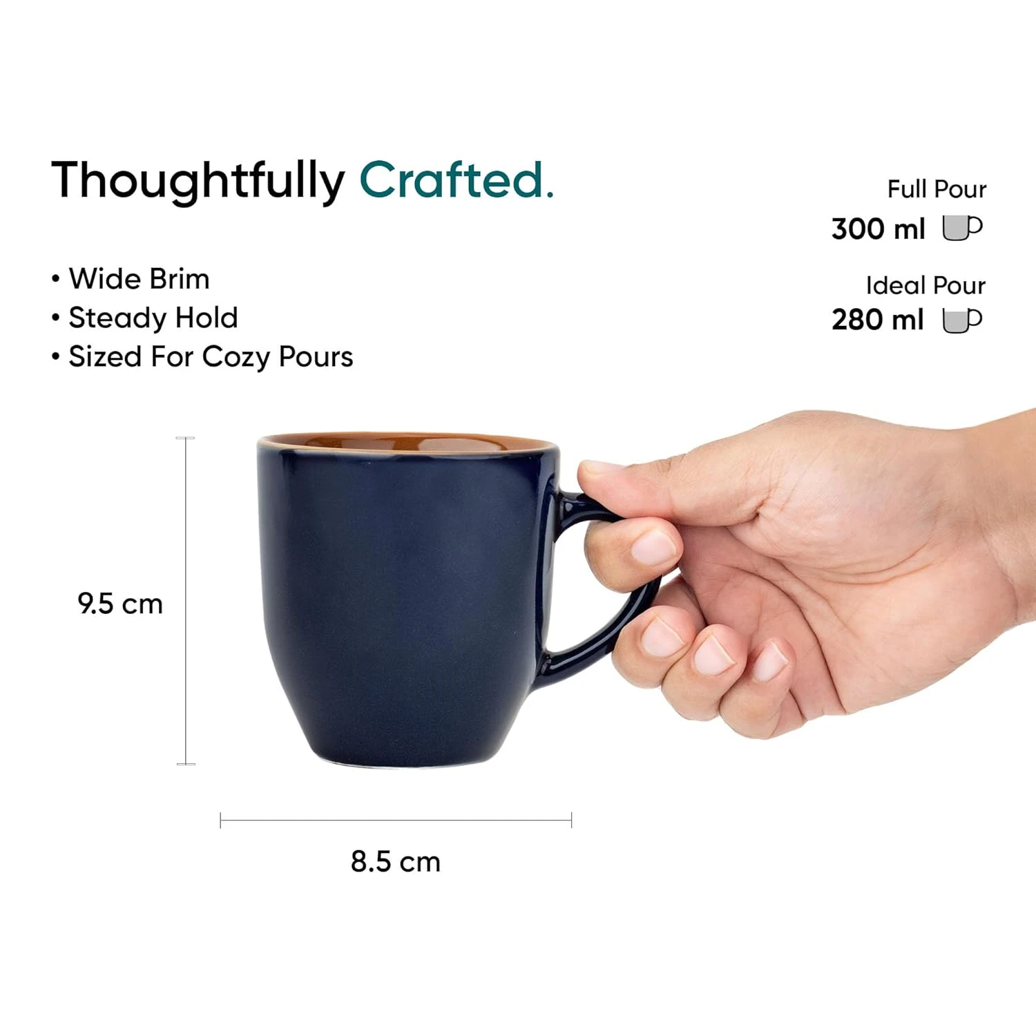 Ceramic Coffee Mug Set, Set of 2, 300ml, Midnight Blue | Medium Mug | Glossy Finish | Stoneware Coffee Cup Set | Ceramic Cup | Microwave Safe (Midnight Blue Milk Mug, Set of 2)