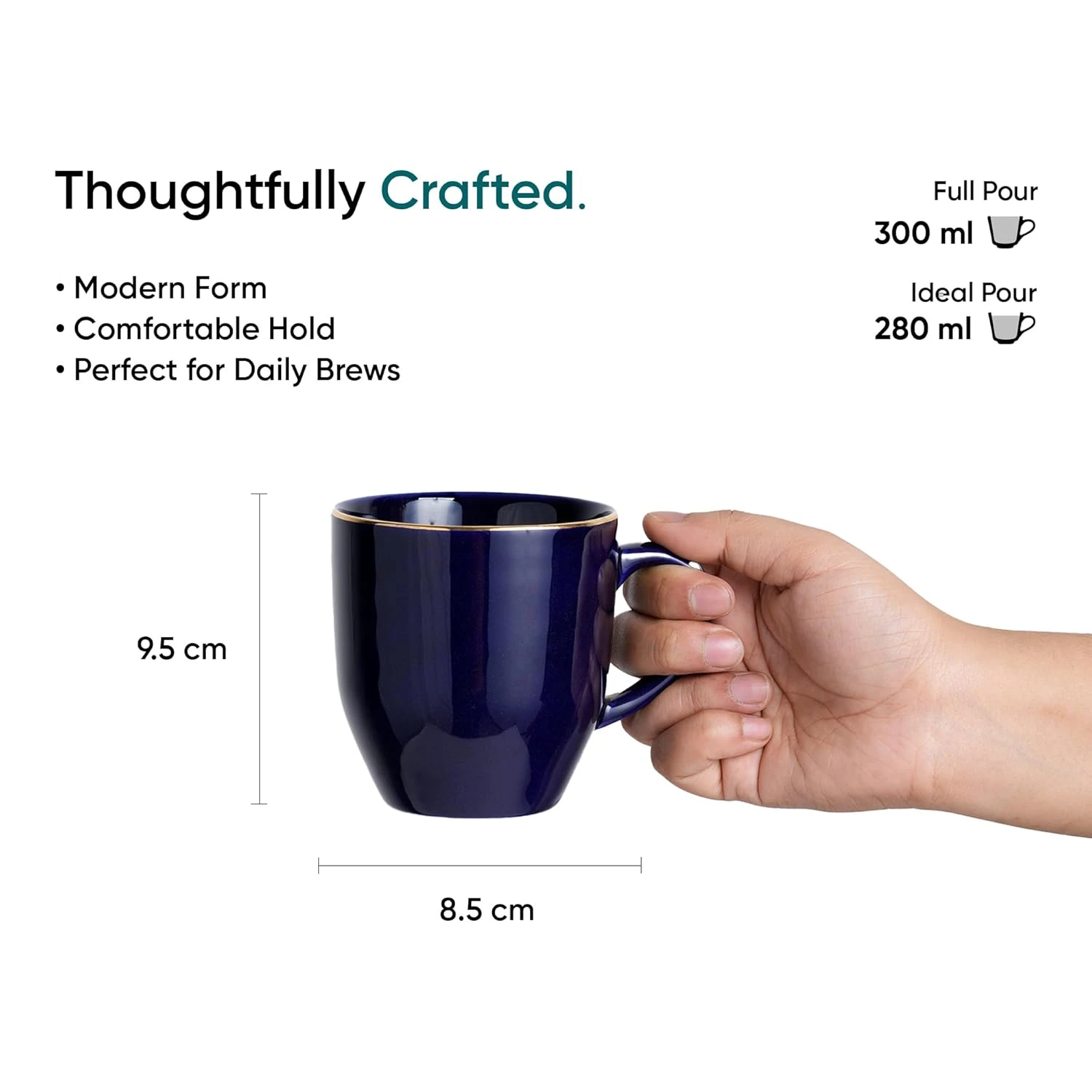 Ceramic Coffee Mug Set, Set of 2, 300ml, Midnight Blue | Medium Mug | Glossy Finish | Stoneware Coffee Cup Set | Ceramic Cup | Microwave Safe (Midnight Blue Milk Mug, Set of 2)
