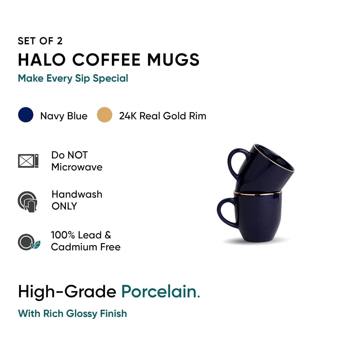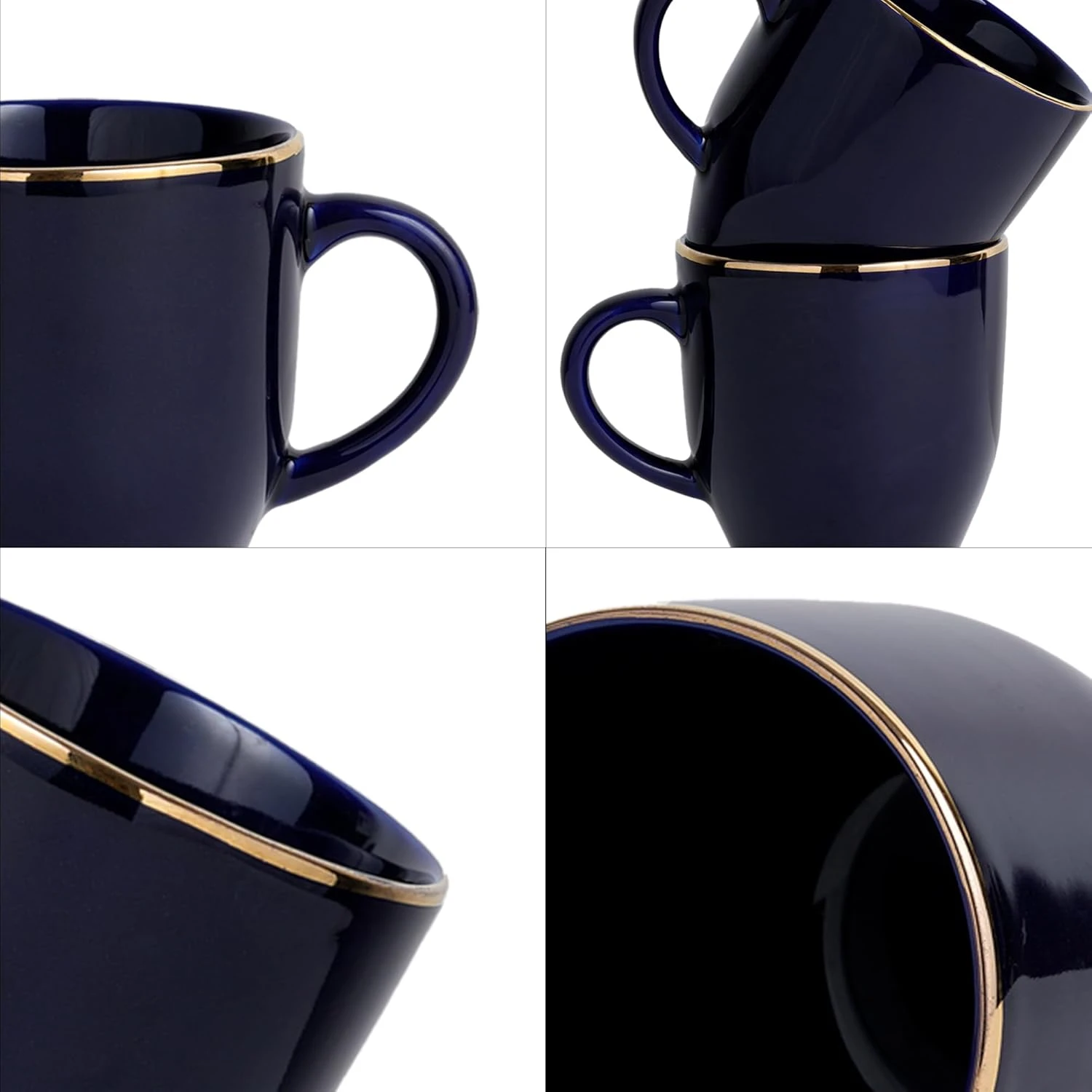 Ceramic Coffee Mug Set, Set of 2, 300ml, Blue Gold | Medium Mug | Glossy Finish | Porcelain Coffee Cup Set | Ceramic Cup (Blue Gold Milk Mug, Set of 2)