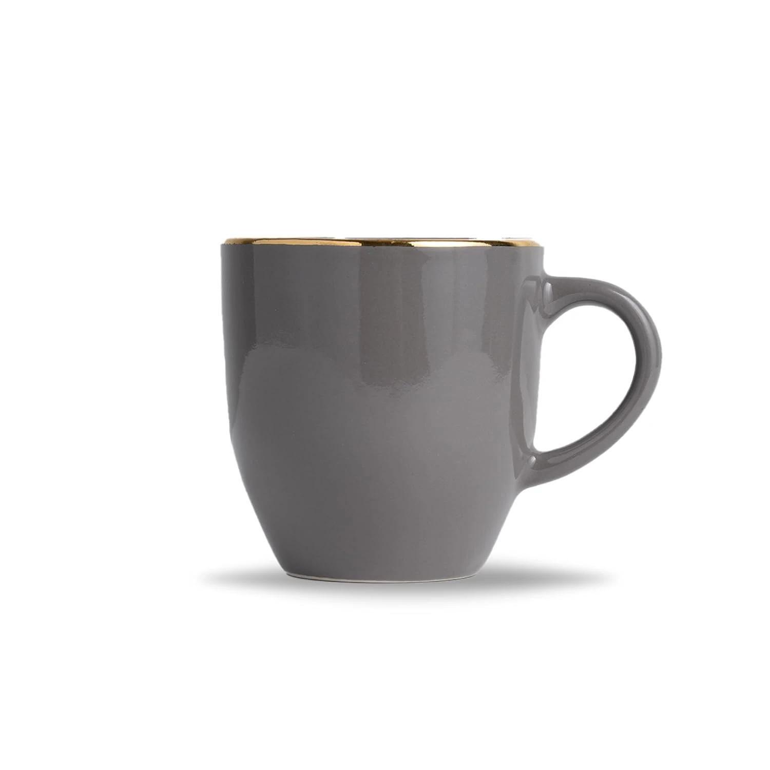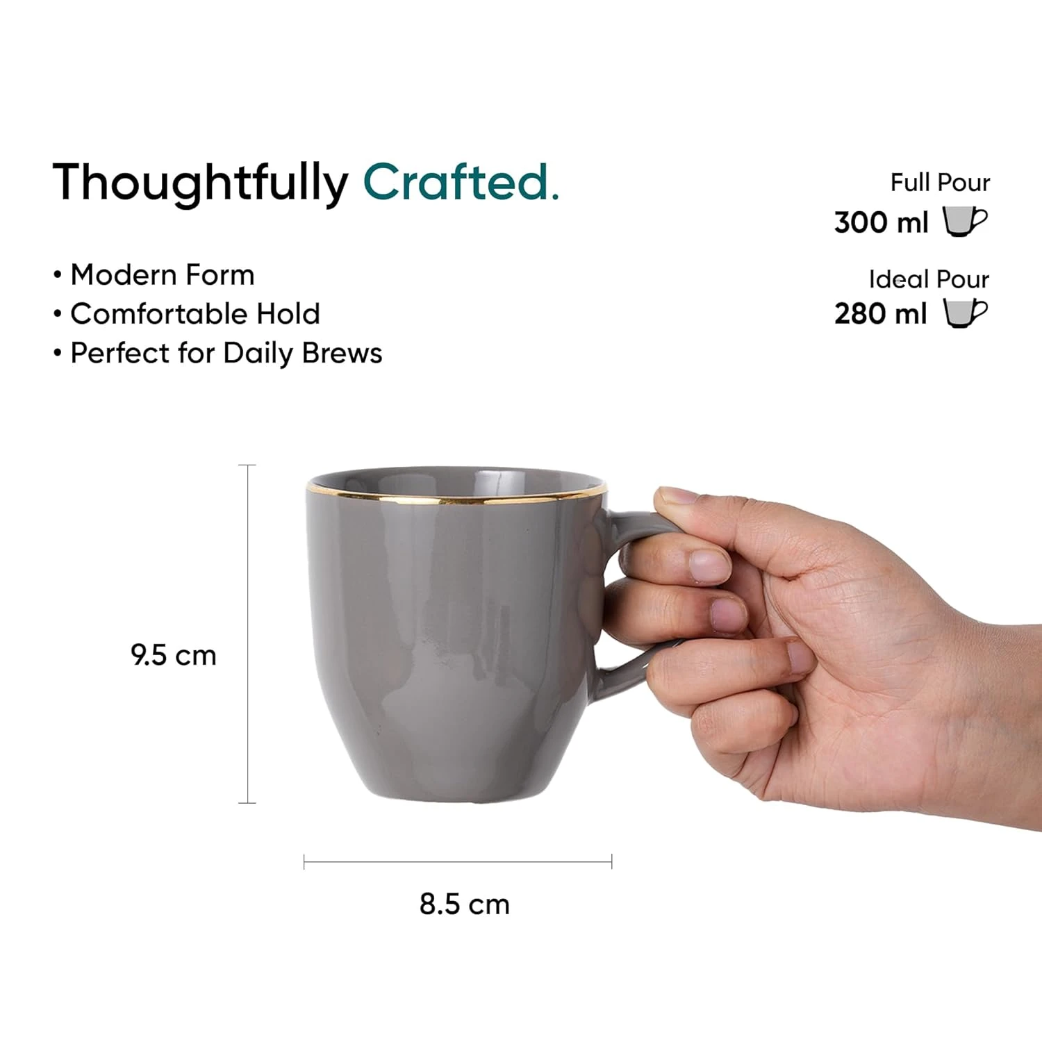 Ceramic Coffee Mug Set, Set of 2, 300ml, Grey Gold | Medium Mug | Glossy Finish | Porcelain Coffee Cup Set | Ceramic Cup (Grey Gold Milk Mug, Set of 2)