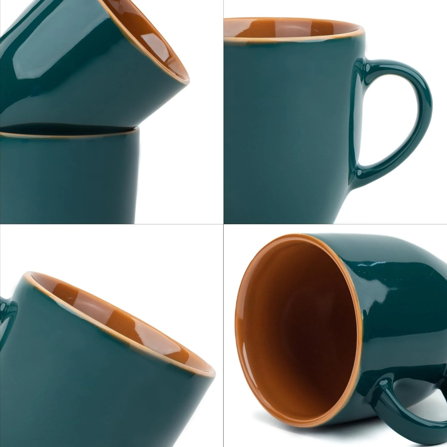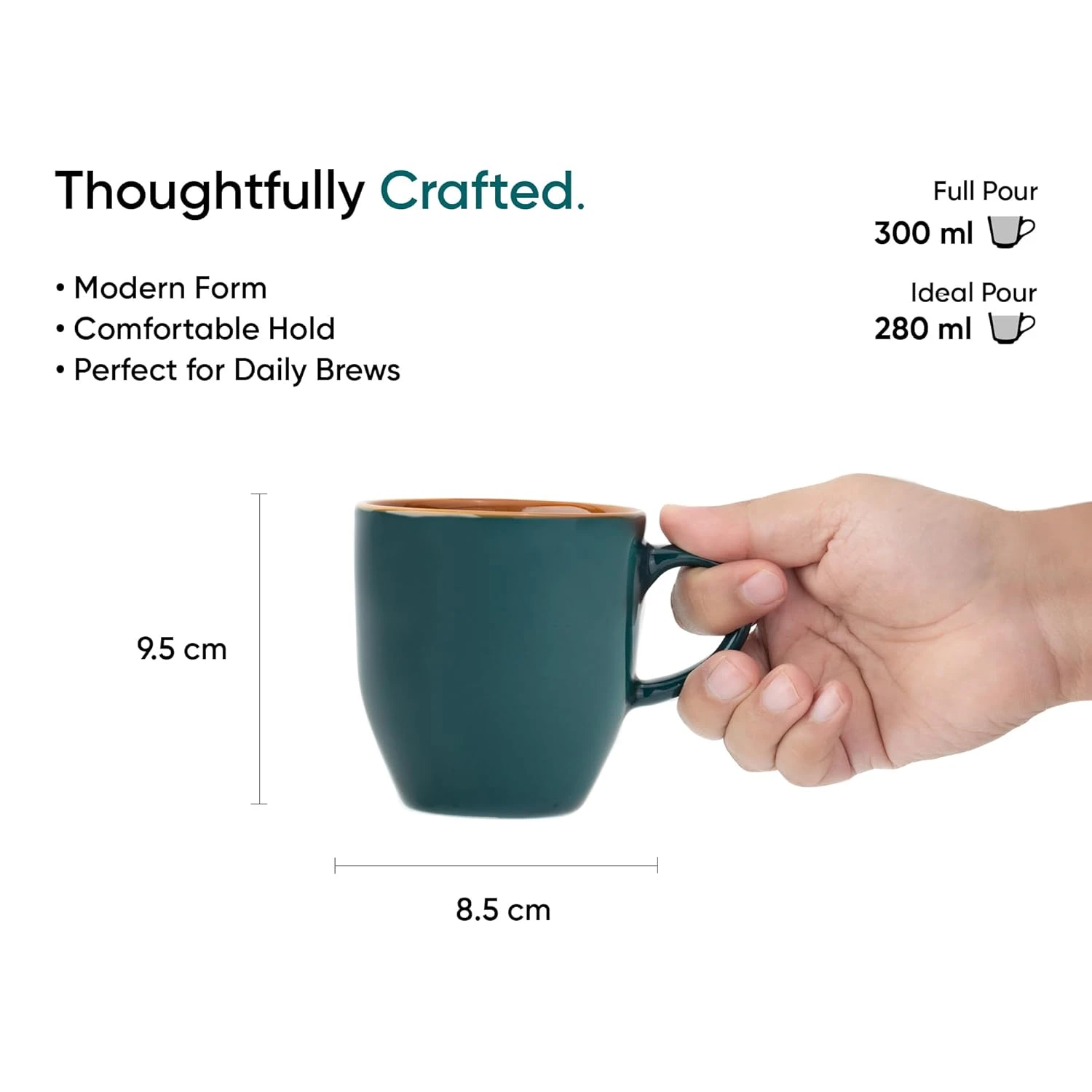 Included components: Set of 2 Coffee Cups, 300ml each. Teal Green Outside, Coffee Brown Inside | Finish - Glossy | Elegant, Unique Modern Design