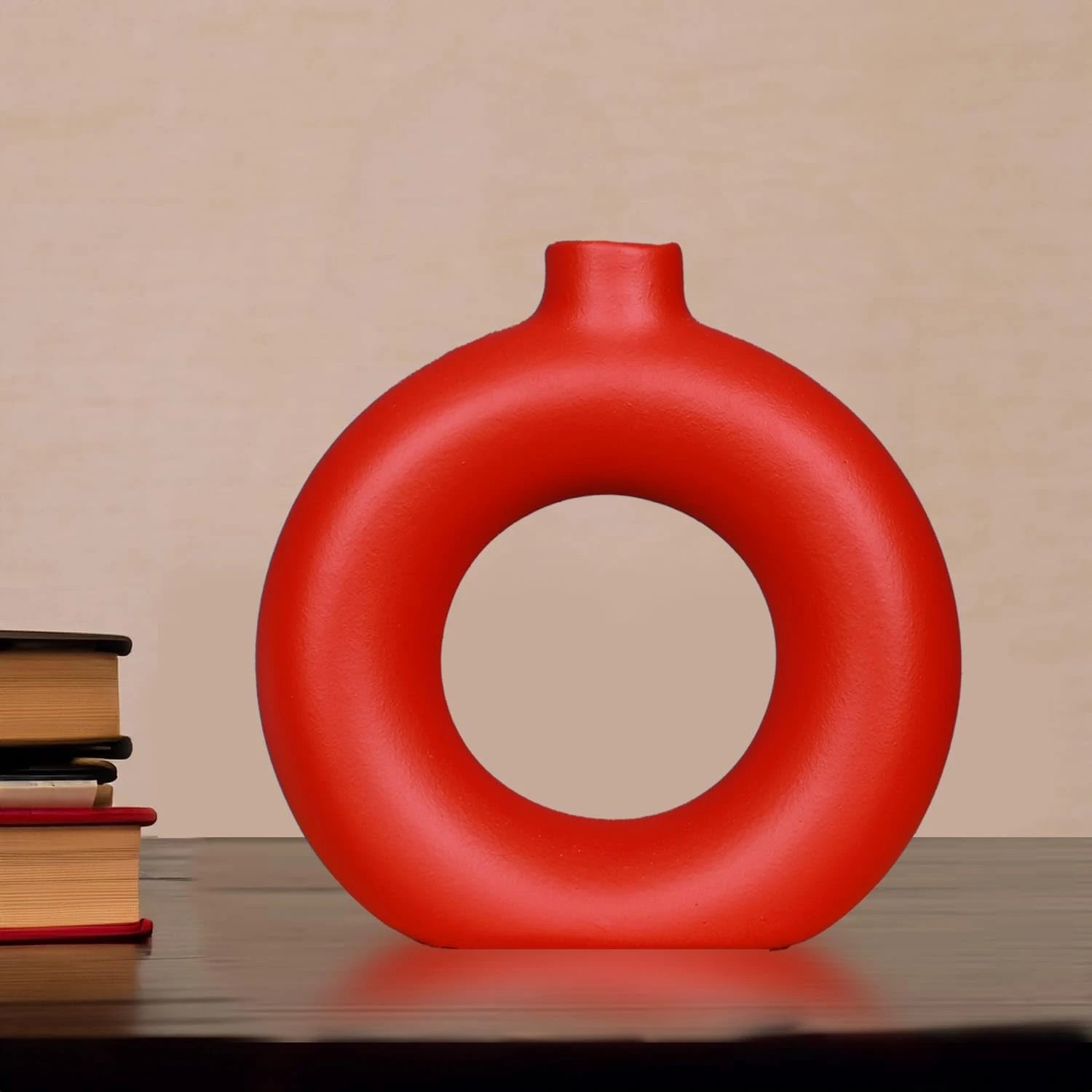 Ceramic Donut Shaped Vase for Home Décor (Pack of 1, Red)