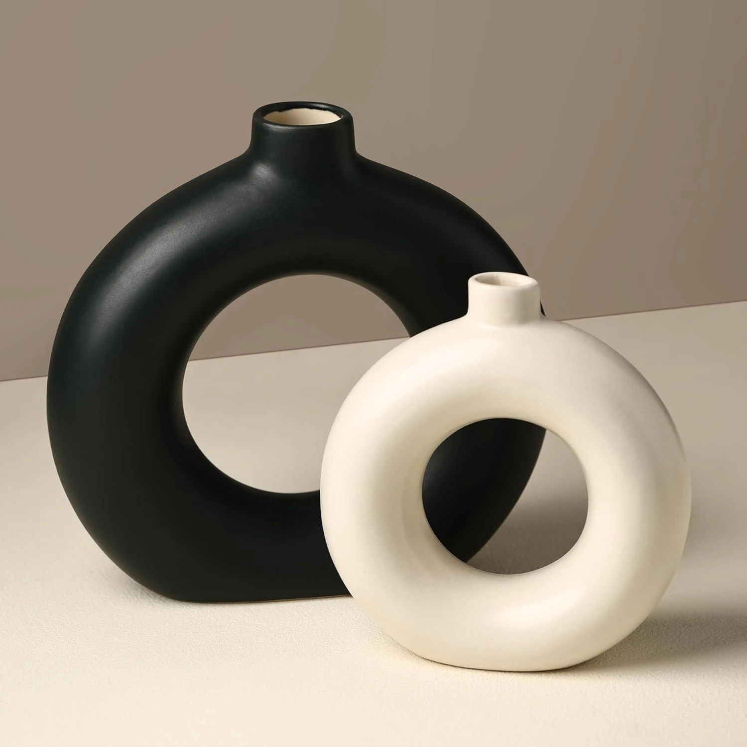 • DESIGN: Unique donut-shaped ceramic vase featuring a hollow centre, perfect as a modern minimalist centerpiece for any space