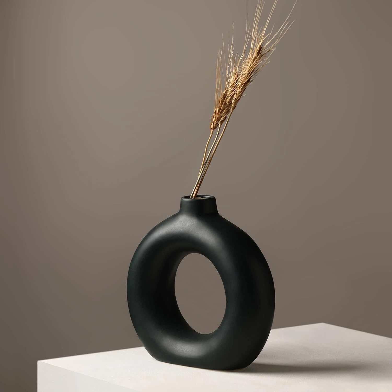 • DESIGN: Unique donut-shaped ceramic vase featuring a hollow centre, perfect as a modern minimalist centerpiece for any space