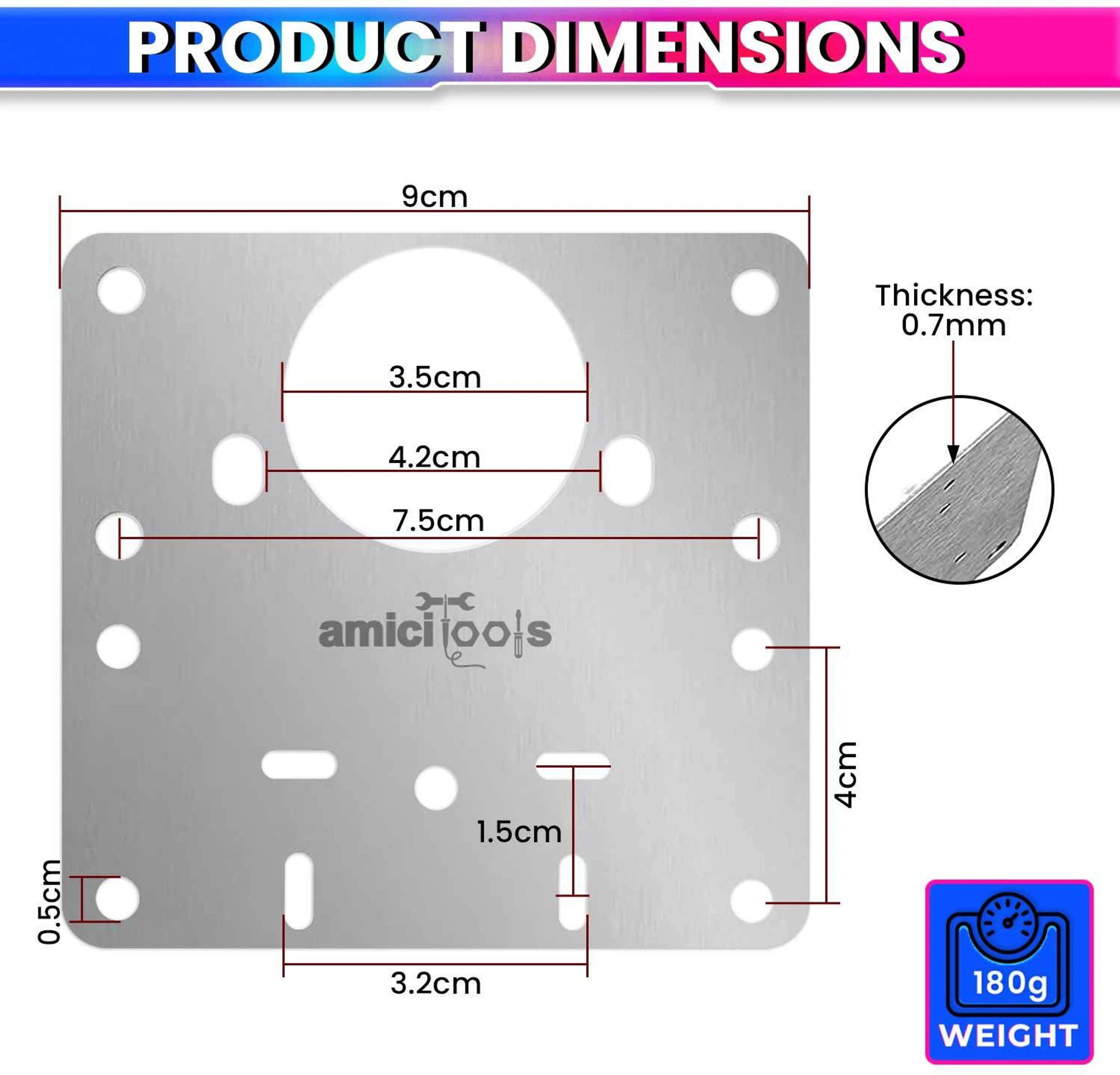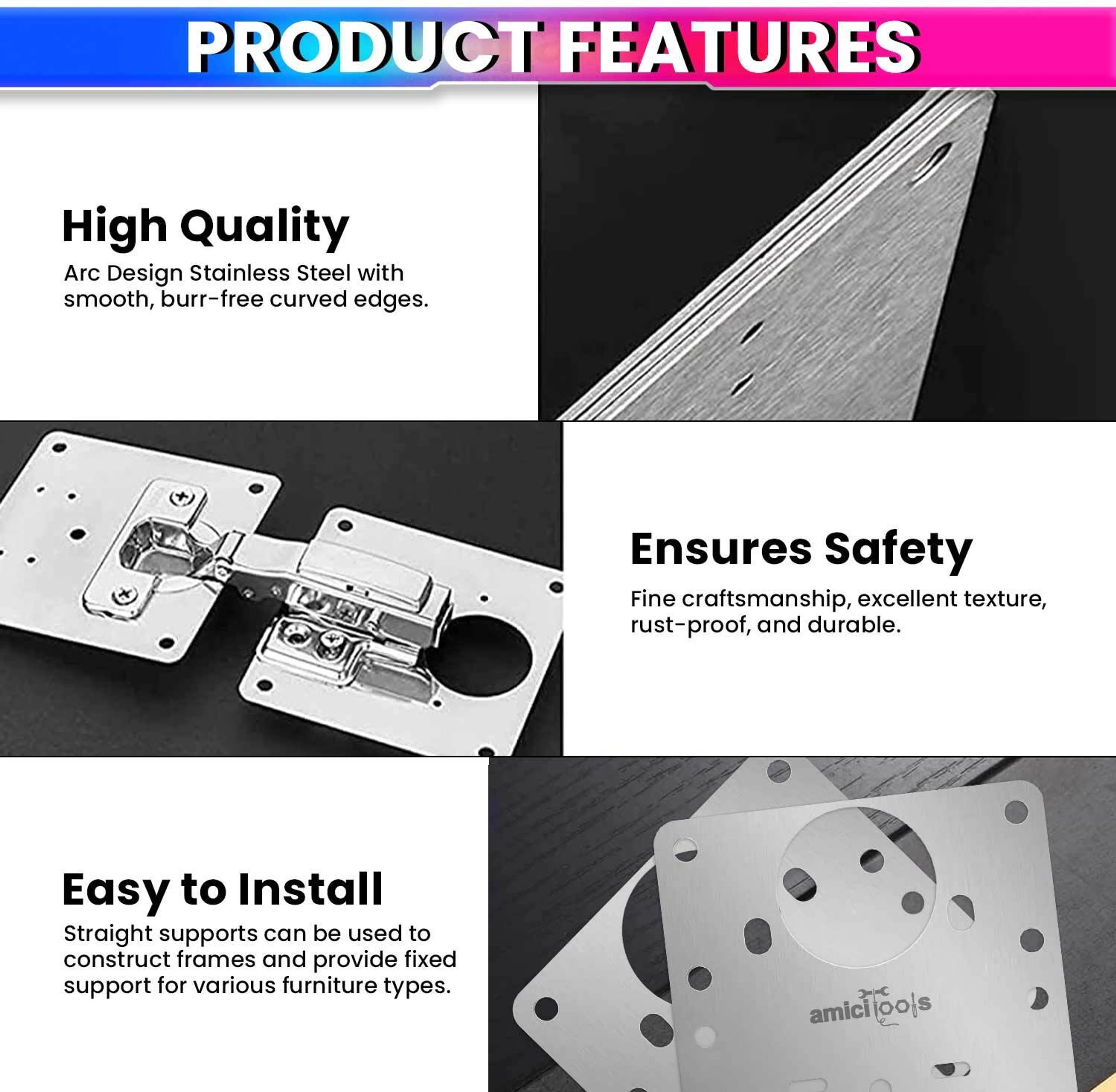 This amiciTools hinge repair bracket is made of cStainless Steel (SS202), which can help repair damaged hinges on the surface and convert the original fixed stress point into a force-bearing area to make it stronger. You will get 4 repair panels and 24 screws, just with the help of a screwdriver or electric drill you can fix the bracket in a breeze. By adopting hinge panel technology, door and side panels can be used. These flat repair panels are widely applied for fixing furniture; As a flat connection, they are very suitable for fixing wooden sofas, wooden tables, chairs, wooden beds, shelves, furniture, kitchen cabinet, doors, windows, etc.