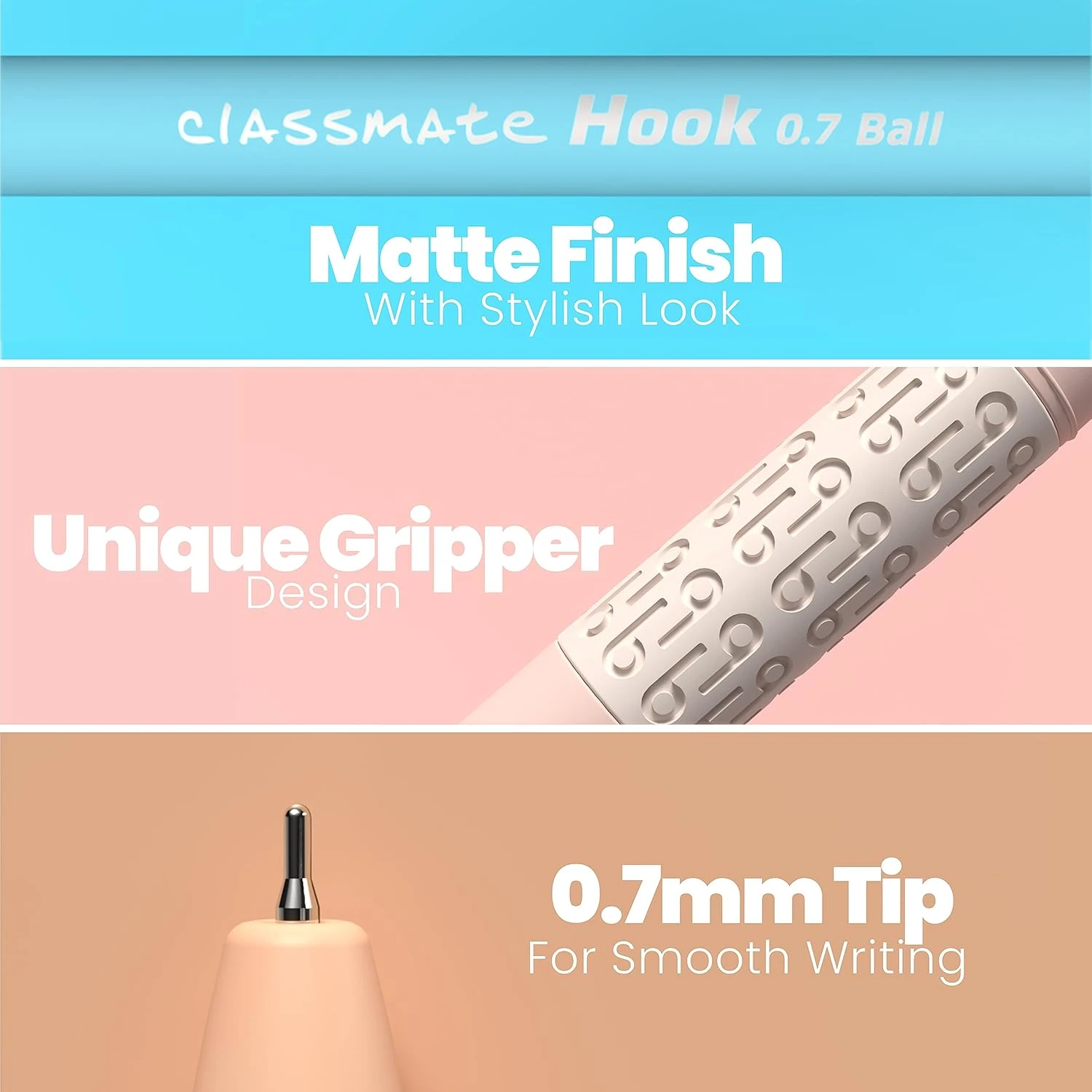 Classmate Hook Ball Pen- Blue (Pack of 10)|Multicolour Body Pens|Attractive Pastel Shades for Boys & Girls