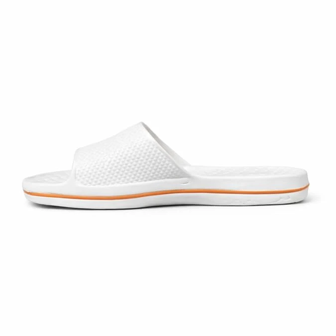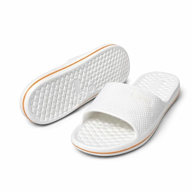 Textured slide slippers with massage footbed provide gentle cushioning and support for all-day comfort, perfect for indoor and outdoor casual wear