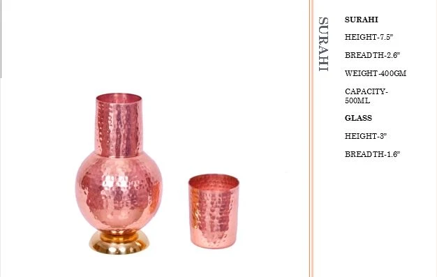 Timeless Design: The Copper Pitcher and Glass Set features a classic design that never goes out of style. Its elegant curves and polished finish make it a striking centerpiece for your dining table.