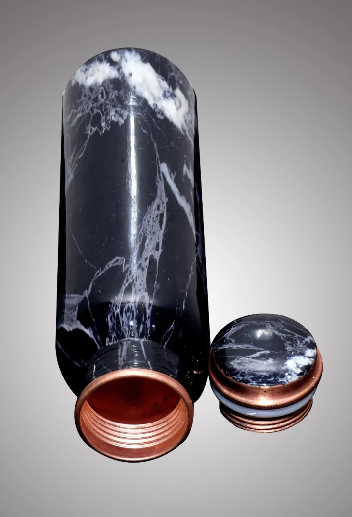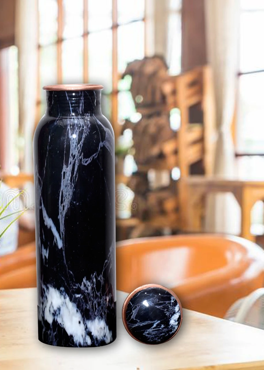 Copper Water Bottle 1 litre - Printed Copper Bottle With Advanced Leak Proof- Water Bottles Copper With Health Benefits (99% Pure Copper - Lab Tested) - Black Marble