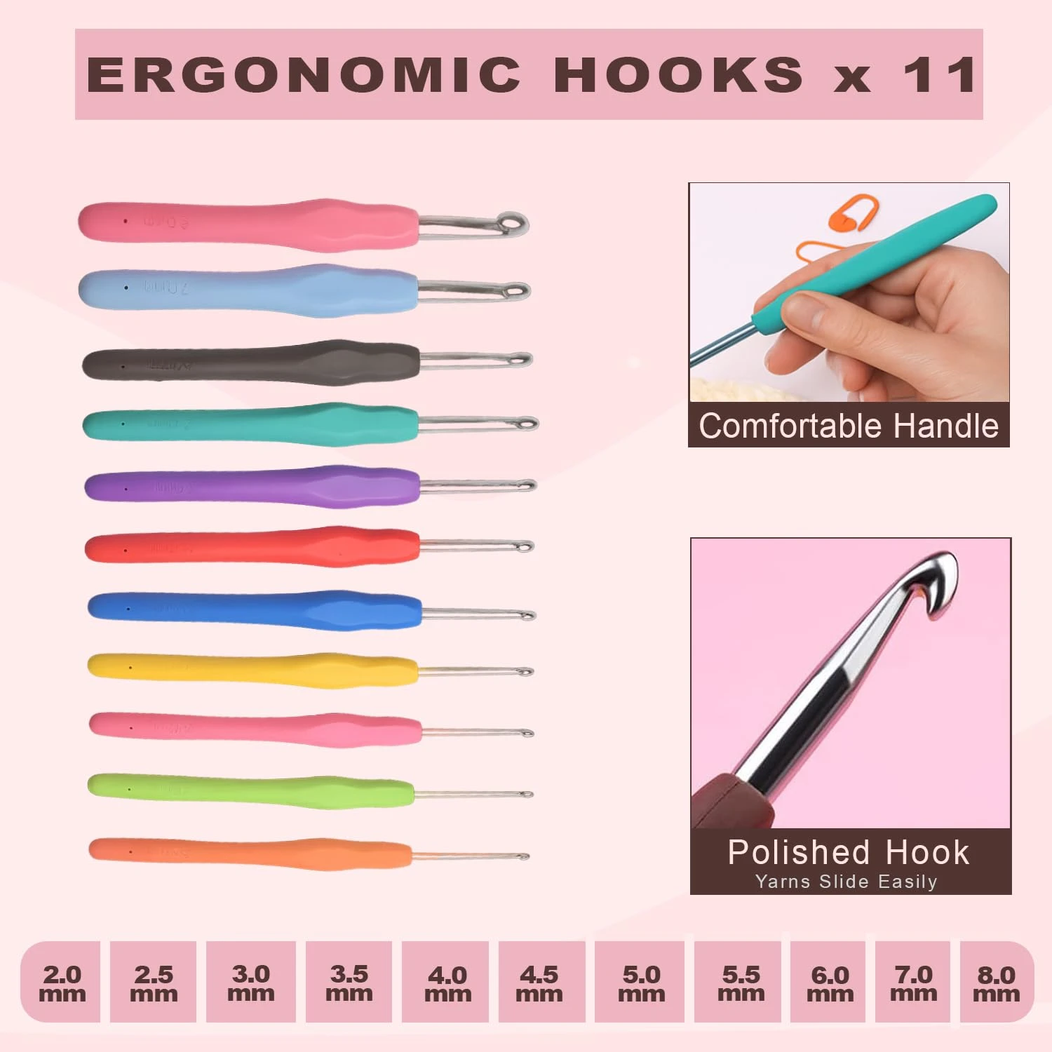Ergonomic Design: Each hook is crafted with a comfortable grip, reducing hand fatigue and allowing for hours of enjoyable crocheting.