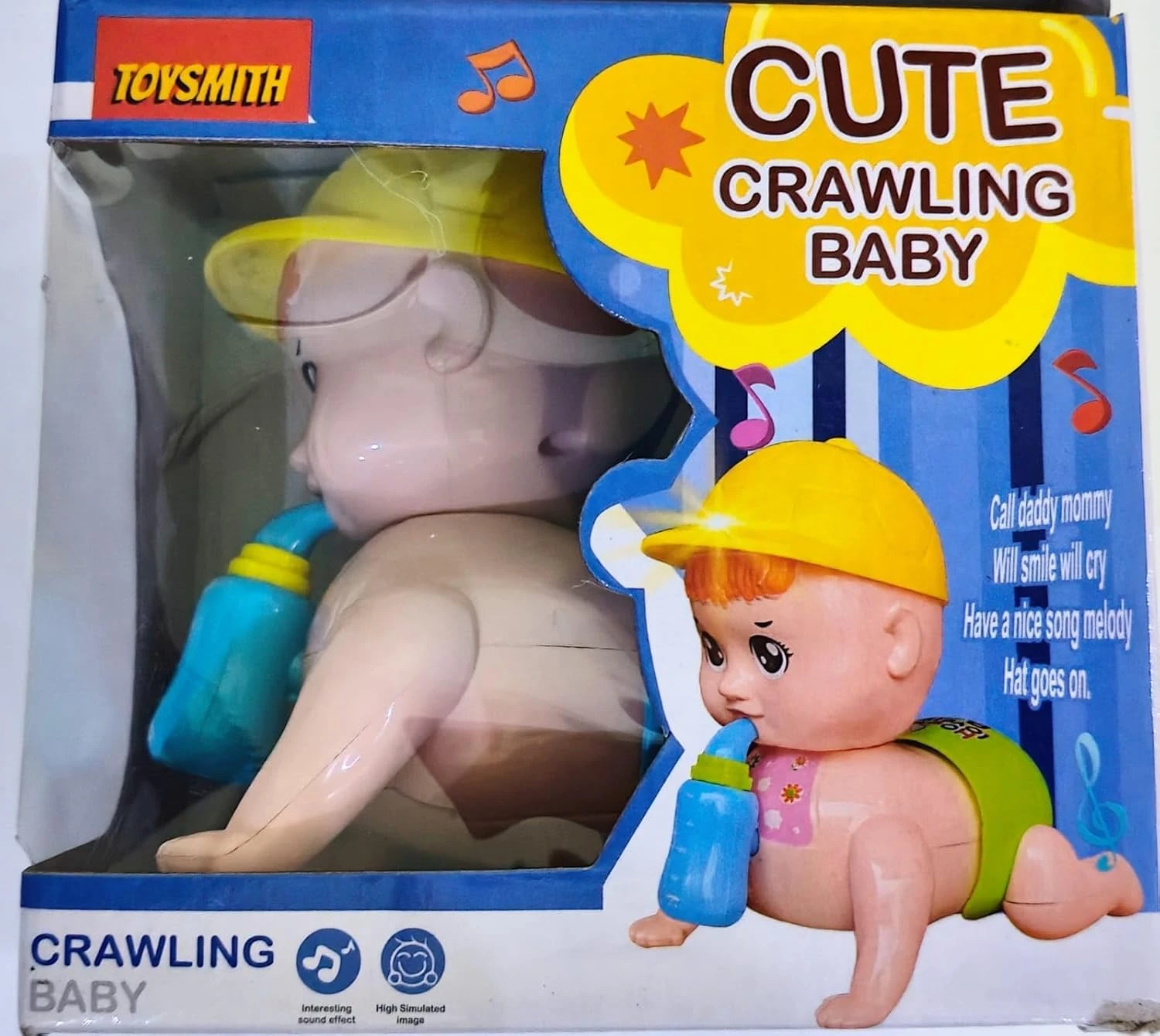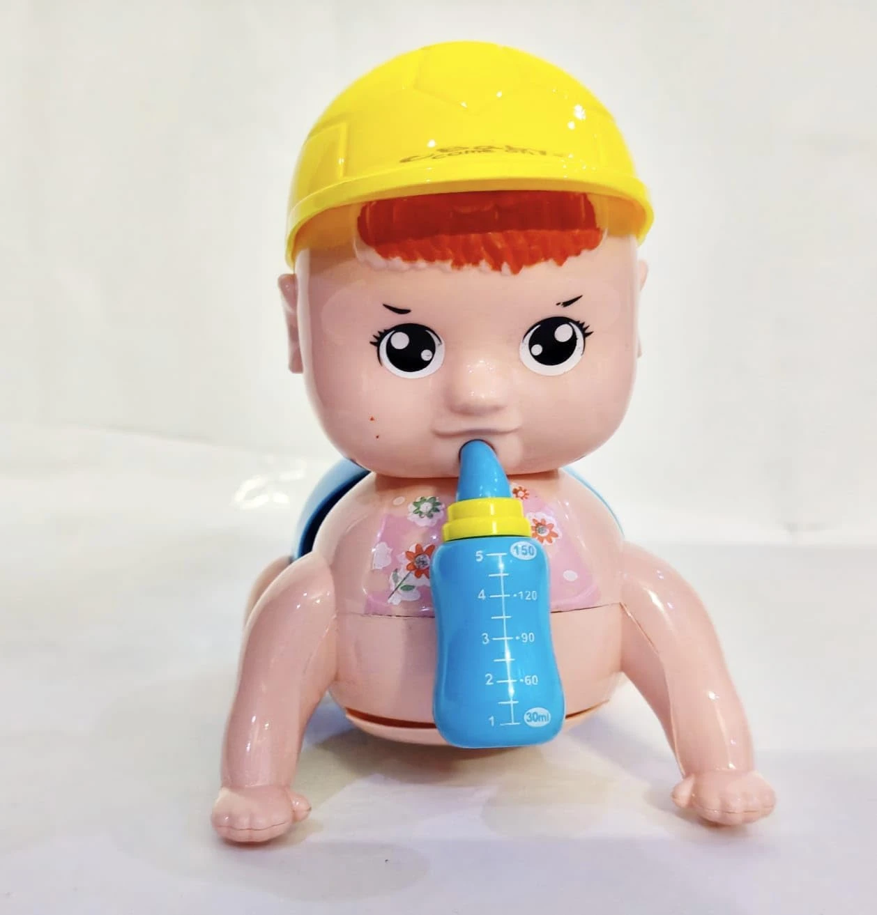 Cute Crawling Baby Toy with Music, Lights & Bottle | Battery Operated Interactive Crawling Doll for Kids (12+ Months)