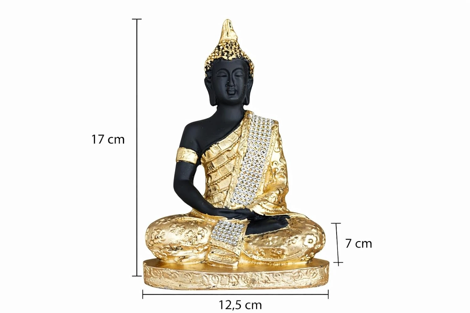 Decorative Buddha Figurine, Black and Gold, Resin, Meditating Pose, Traditional Asian Style, Religious Theme