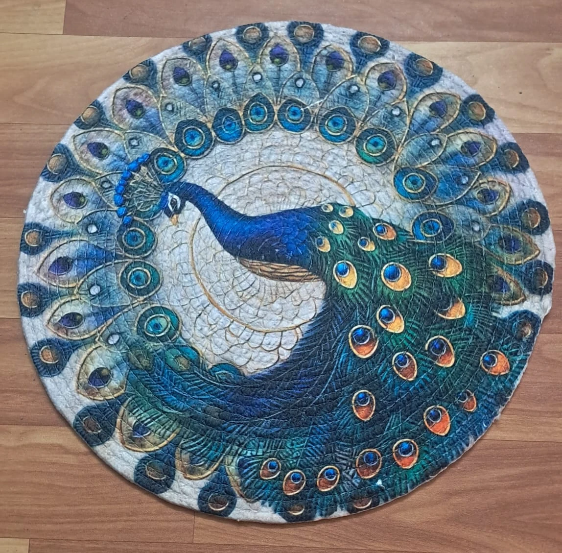 Decorative Round Cotton Table Placemat, Round Shape, Size - 15Inch, Best for Side Table, Center Table, Washable Placemat, Dinning Table Shelves Pack of 1 (Style 17)