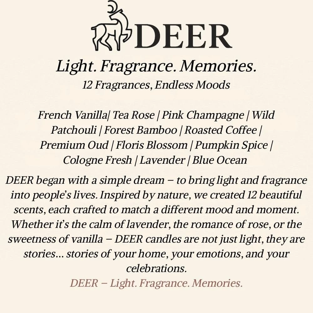 Long-Lasting Burn Time: With an impressive burn time of up to 50 hours, the DEER Forest Bamboo Scented Candle offers extended enjoyment, allowing you to savor its delightful aroma for days on end.