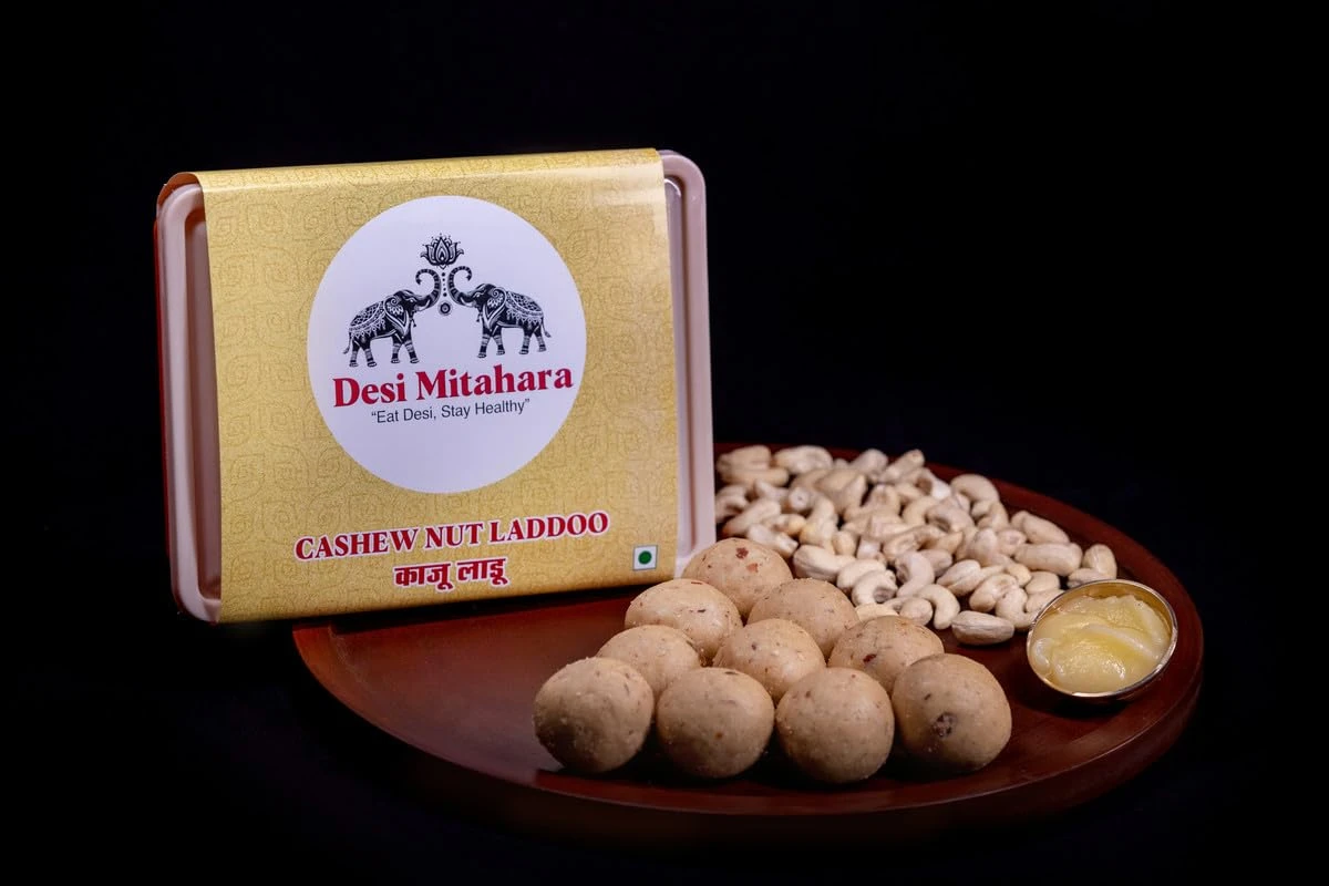 DESI MITAHARA – Cashew Ladoo - Made with Cashew, Jaggery & Cow Ghee - Traditional Indian Sweet - Healthy, Nutritious Snack - 360g Pack - No Artificial Colours - Suitable for All Ages
