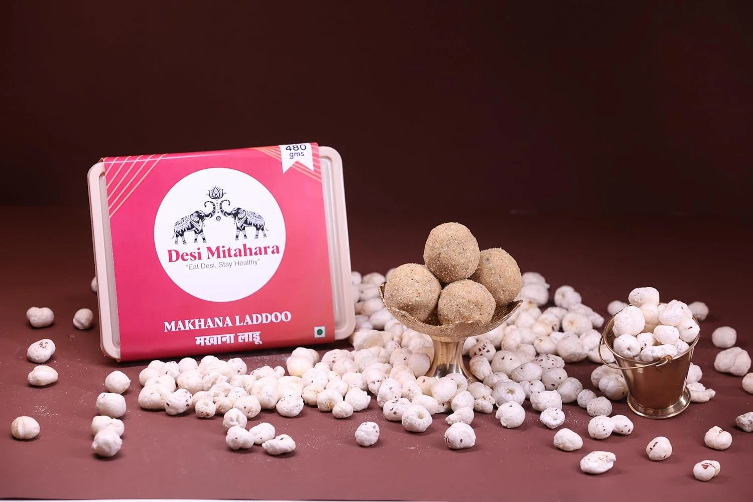 DESI MITAHARA – Makhana Ladoo - Made with Makhana, Jaggery & Cow Ghee - Traditional Indian Sweet - Healthy, Nutritious Snack - 360g Pack - No Artificial Colours - Suitable for All Ages