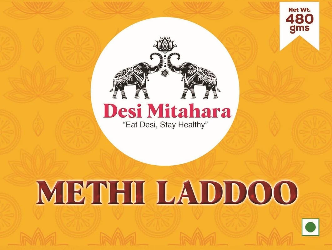 DESI MITAHARA – Methi Ladoo - Contains Cow Ghee & Jaggery - Traditional Indian Sweet - Protein-Rich - Healthy, Nutritious Snack - 480g Pack - No Artificial Colours - Suitable for All Ages