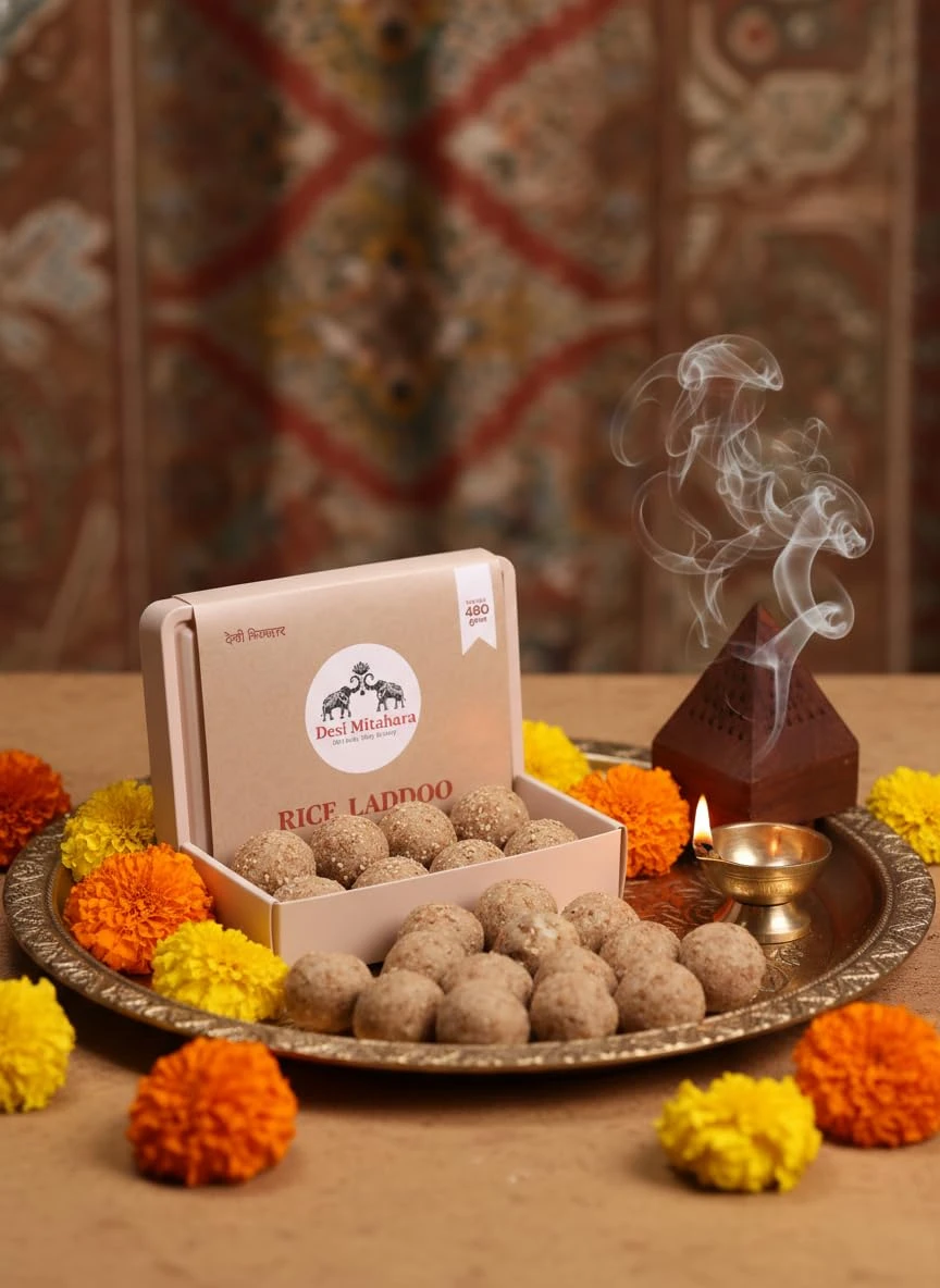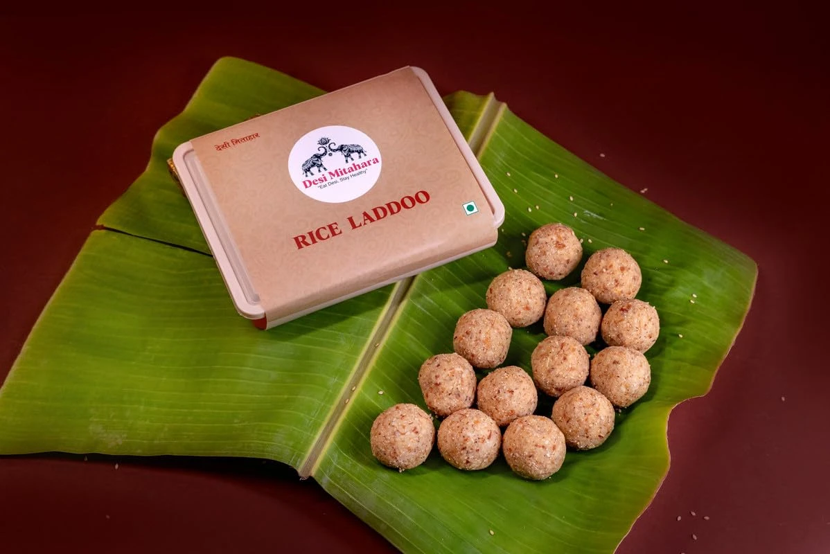 DESI MITAHARA – Rice Ladoo - Made with Rice, Jaggery & Cow Ghee - Traditional Indian Sweet - Healthy, Nutritious Snack - 480g Pack - No Artificial Colours - Suitable for All Ages
