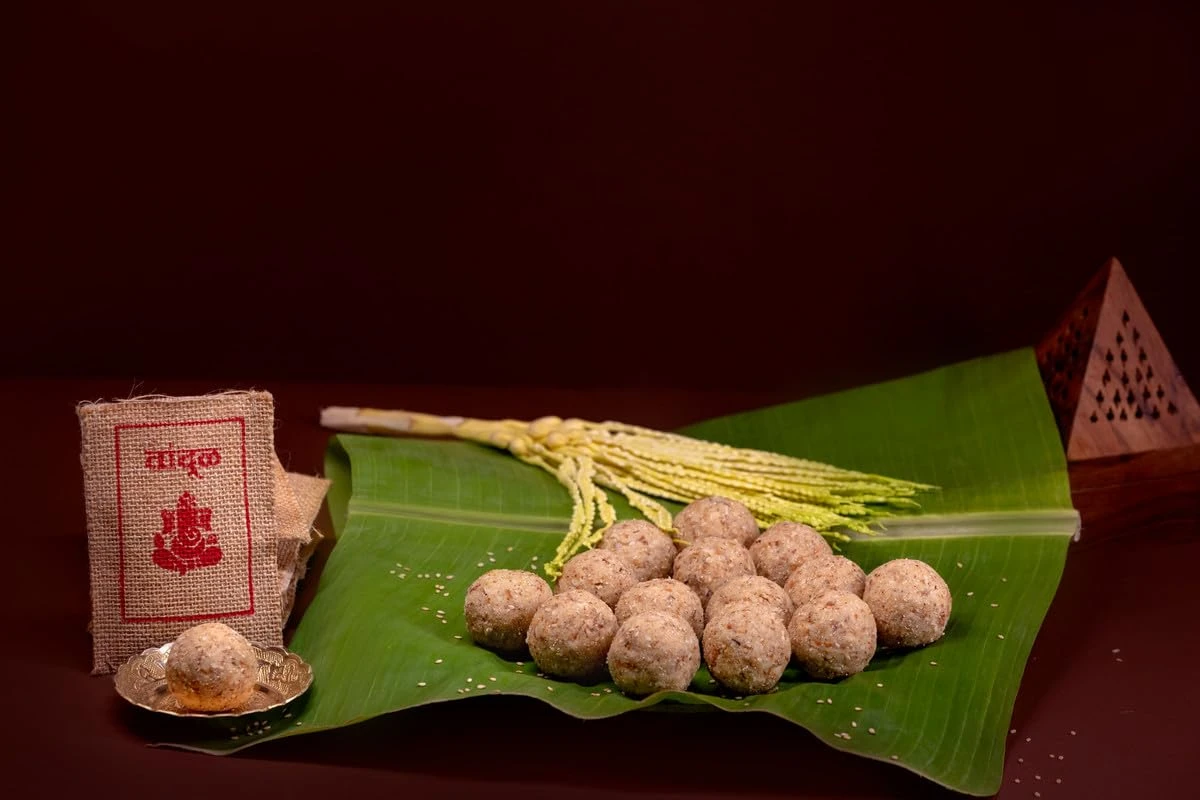 • Sweetened with Jaggery: Instead of refined sugar, these ladoos are prepared with jaggery, which lends a rich, caramel-like flavor and a naturally golden hue.