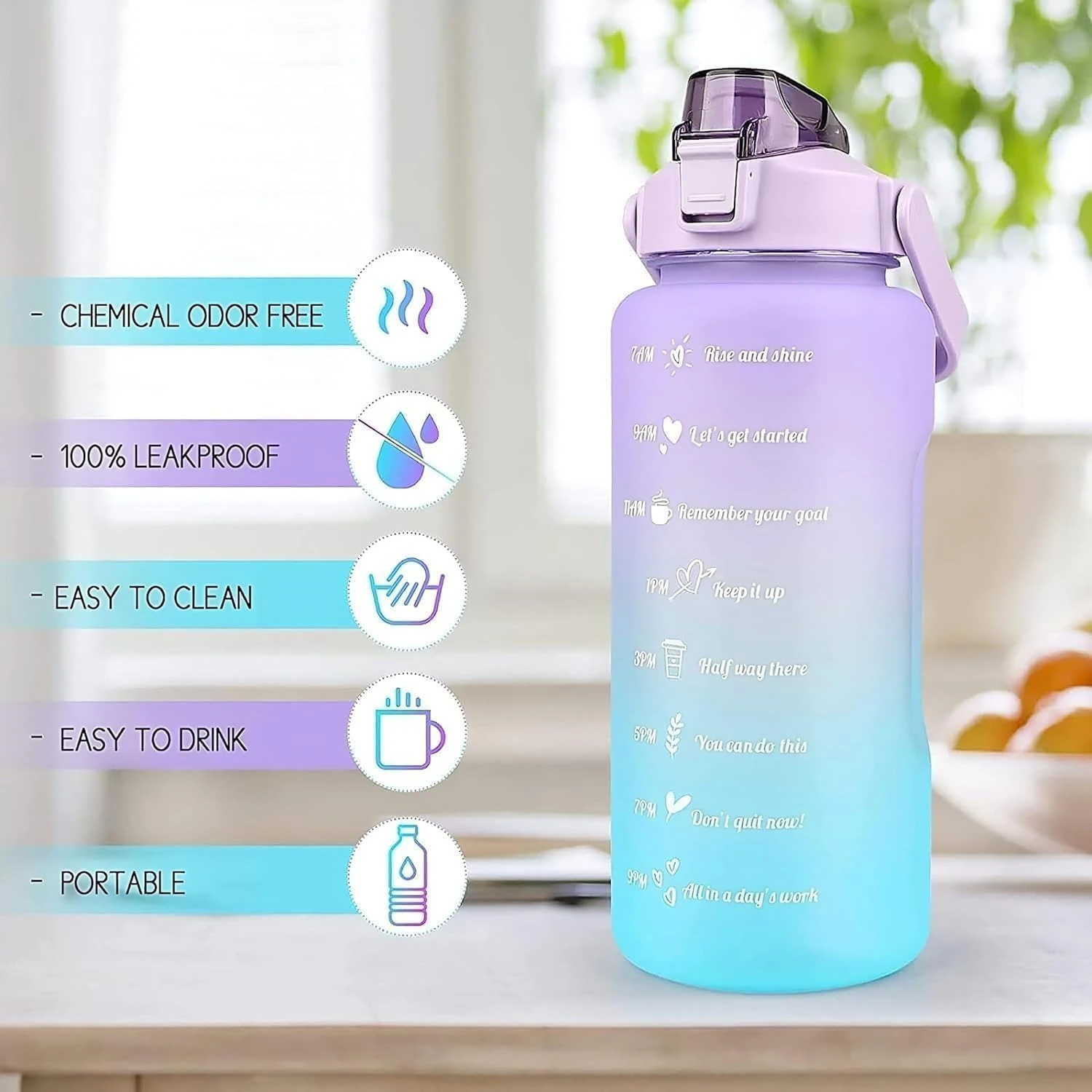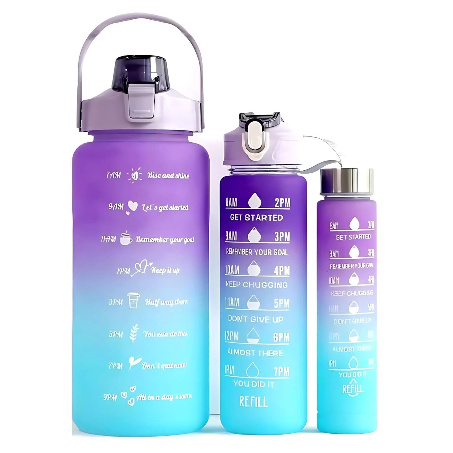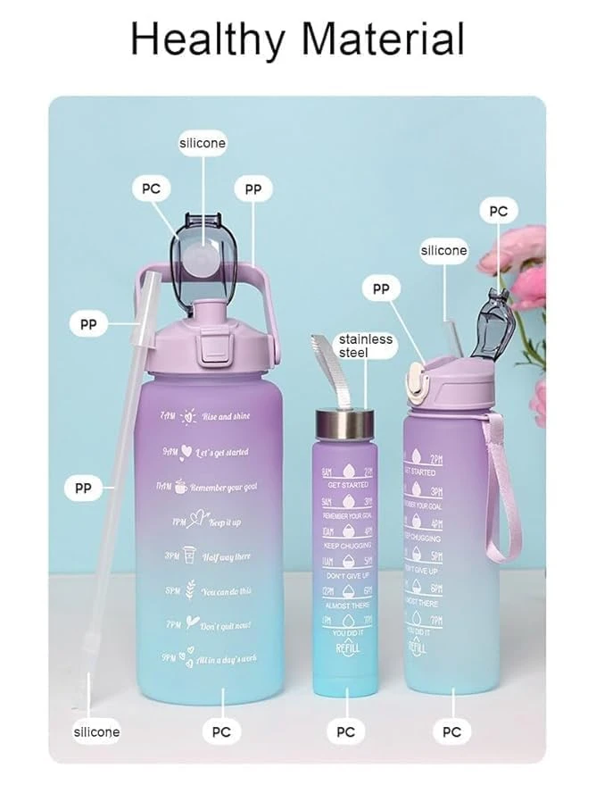 1. Time Markers for Hydration Tracking: Each bottle features time markers that serve as a reminder to drink water throughout the day, helping you achieve your hydration goals. These markers encourage consistent water intake, promoting better health and well-being.