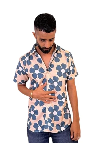 DIOS DAMROOS Men's Abstract Pattern Short Sleeve Shirt, Lightweight Breathable Casual Wear (in, Alpha, M, Color 2)