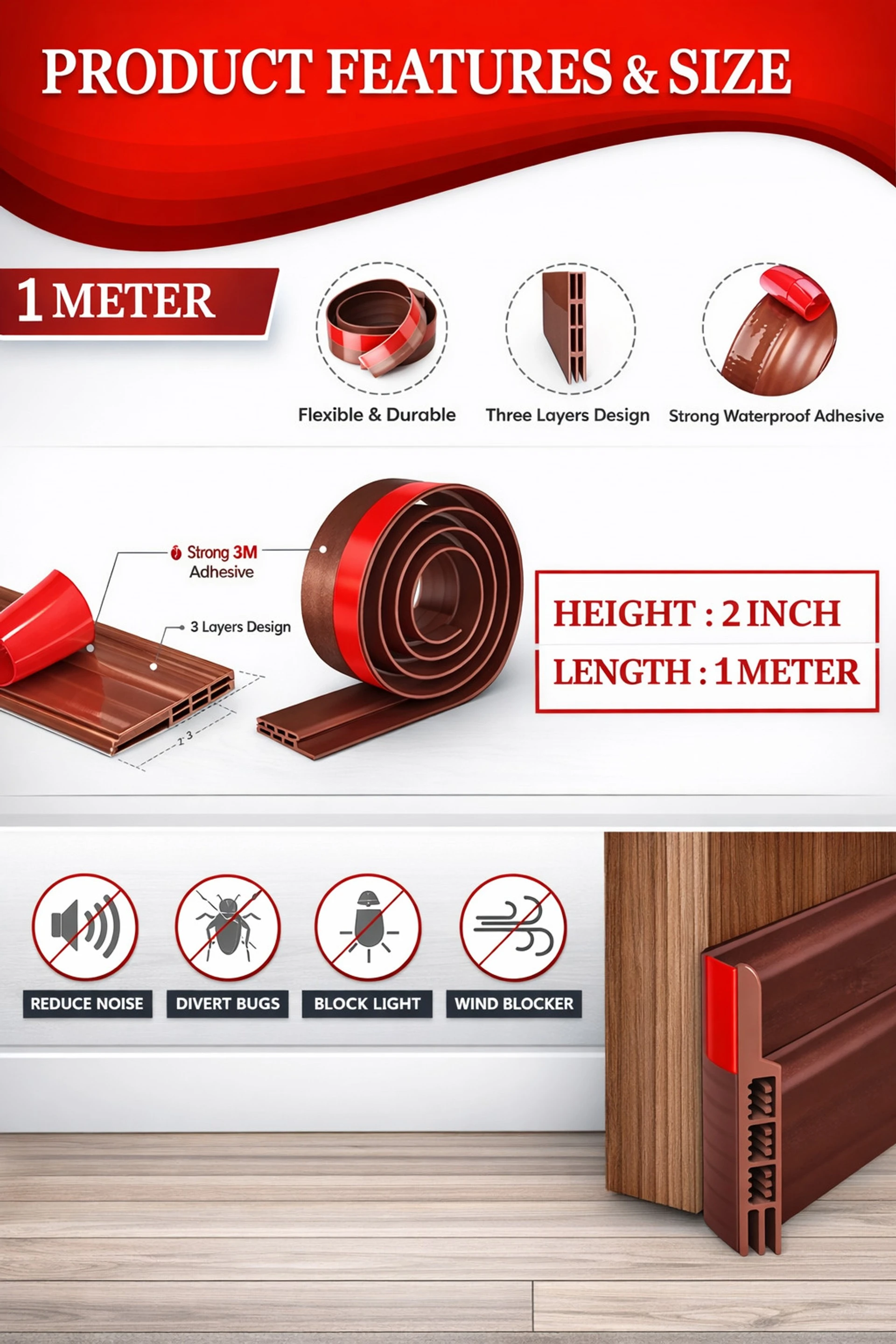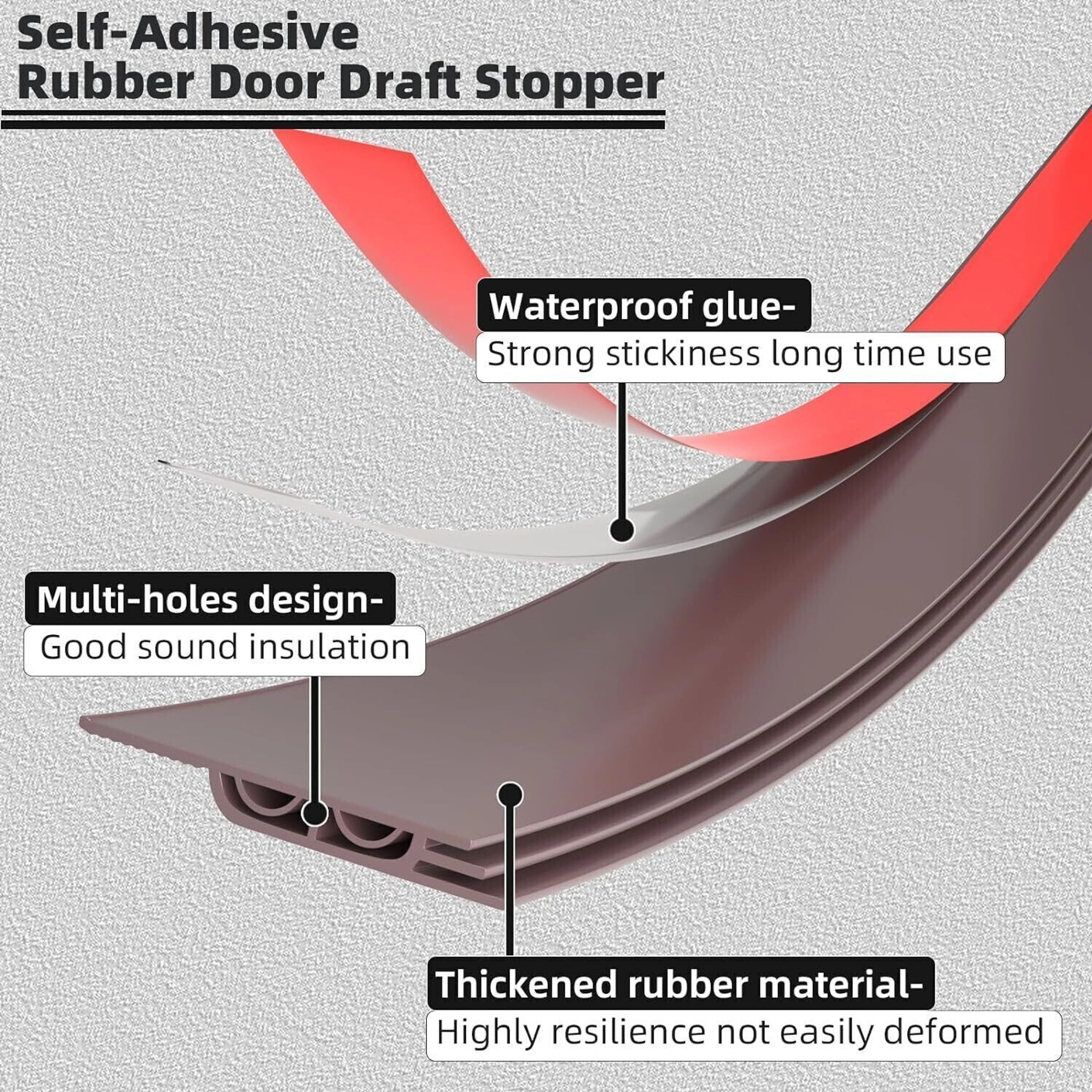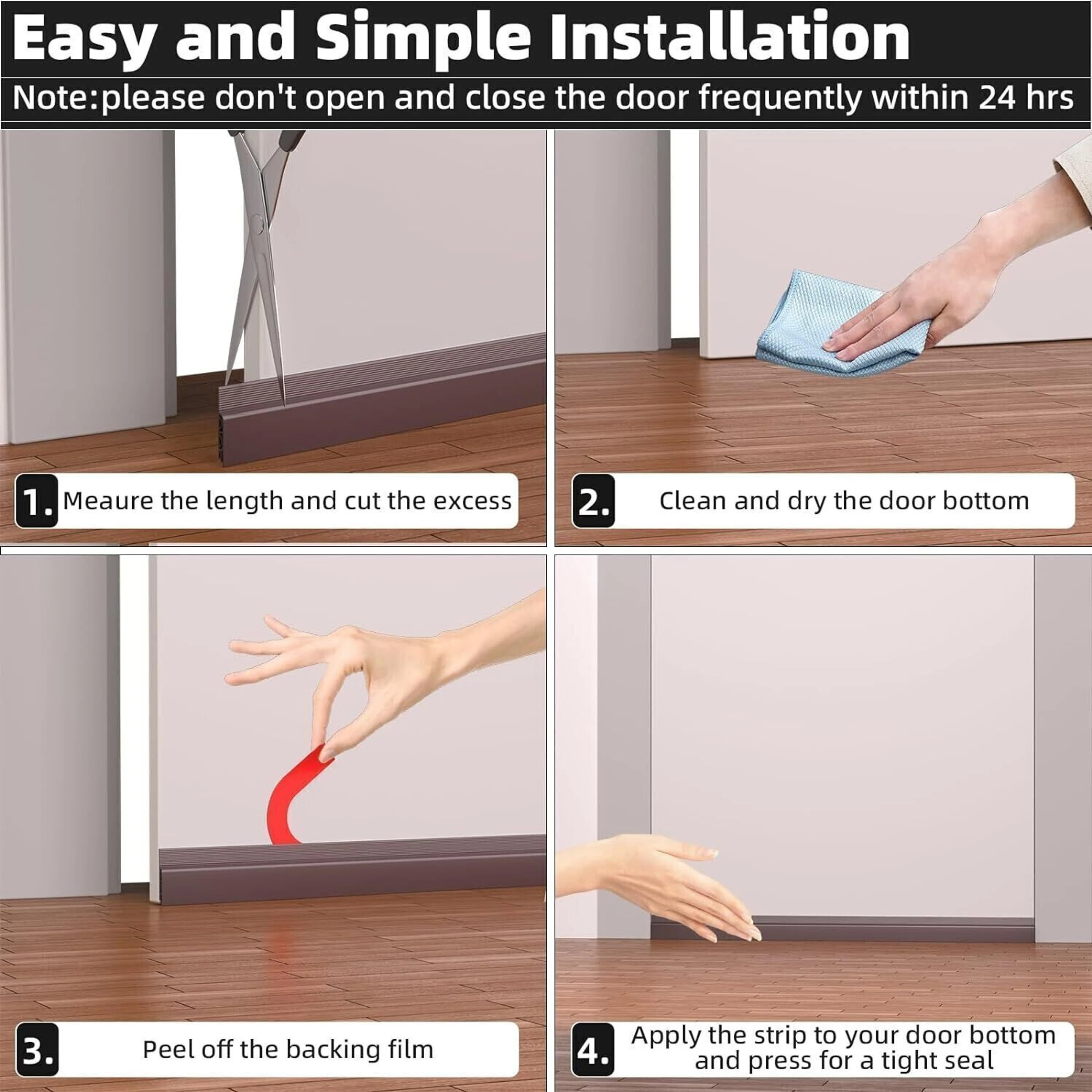 AMBDDED Adhesive Door Seal Strip effectively seals gaps up to 1 inch to prevent dust, cockroaches, insects, and air drafts from entering. Made from flexible, transparent silicone, it blends seamlessly with any door. The strong self-adhesive backing allows for quick, tool-free installation. Ideal for wooden, metal, or glass doors in homes, offices, or shops. It also helps reduce noise and maintain room temperature