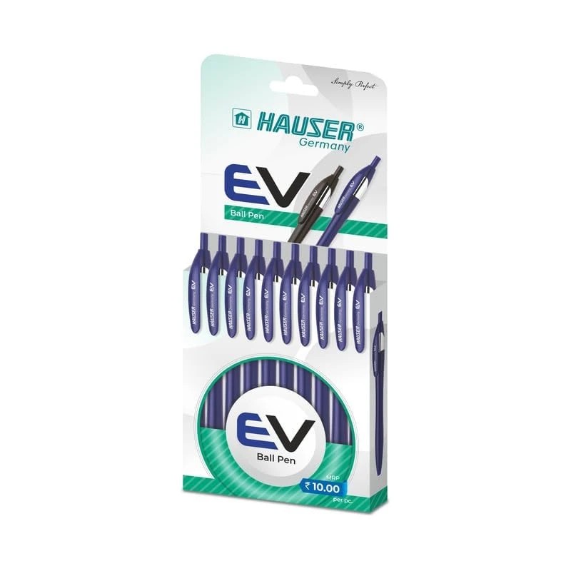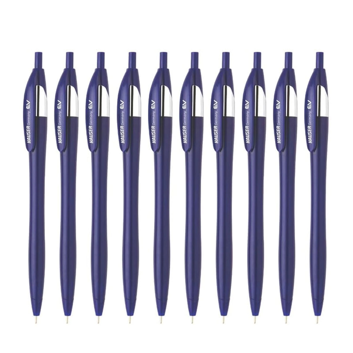 Ev Retractable Ball Pen Wallet Pack | Minimalistic Stylish Body With Pocketable Clip | Blue Ink, Pack Of 10