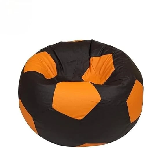 Faux Leather Double Colour Print Round Shape Bean Bag Cover Without Beans 4XL (Bean Bag01_Black & Orange)