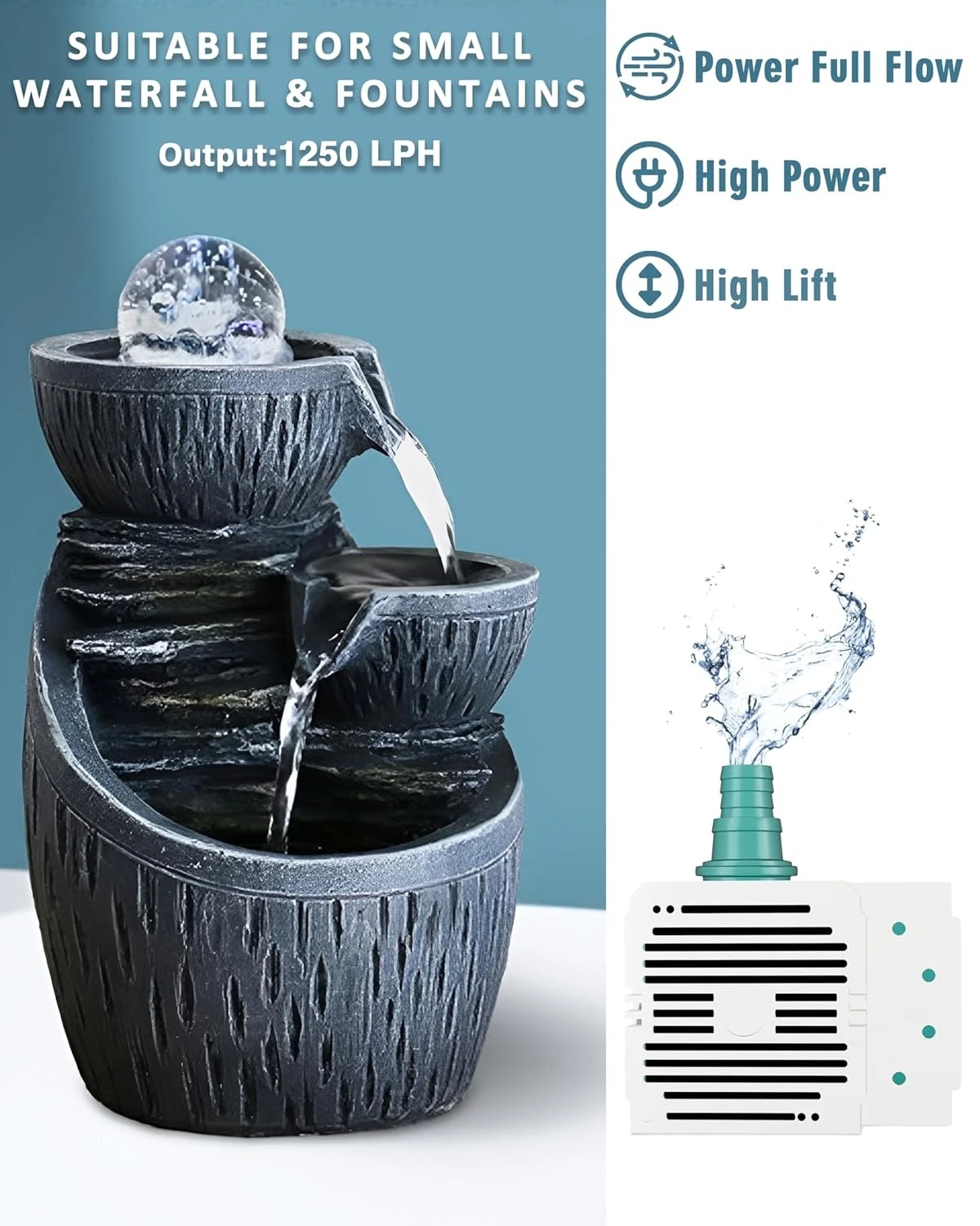 ▶STRONG POWER AND HIGH LIFT - Gives you a true flow rate of 750 LPH (at zero height) and a water lift of 0.75m/2.4 Feet, 9W High-Quality Motor for energy saving. Lift height is the max height the water goes up, after connecting the water pipe to the nozzle (Make sure the joint is sealed securely and tightly), NOTE - Please check the water lifting height before making a purchase.