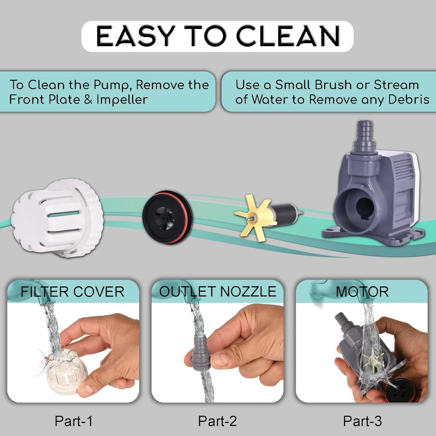▶MULTI USES & SAFETY- Safe for fish with no exposed copper and oil-free. This reliable, ultra-quiet submersible pump is excellent for aquariums, min fountains and hydroponic pump systems. No-tool detachable makes the cleaning process even easier as you do not require any tool to detach and reassemble the pump. Also, regular cleaning enhances the product's life.