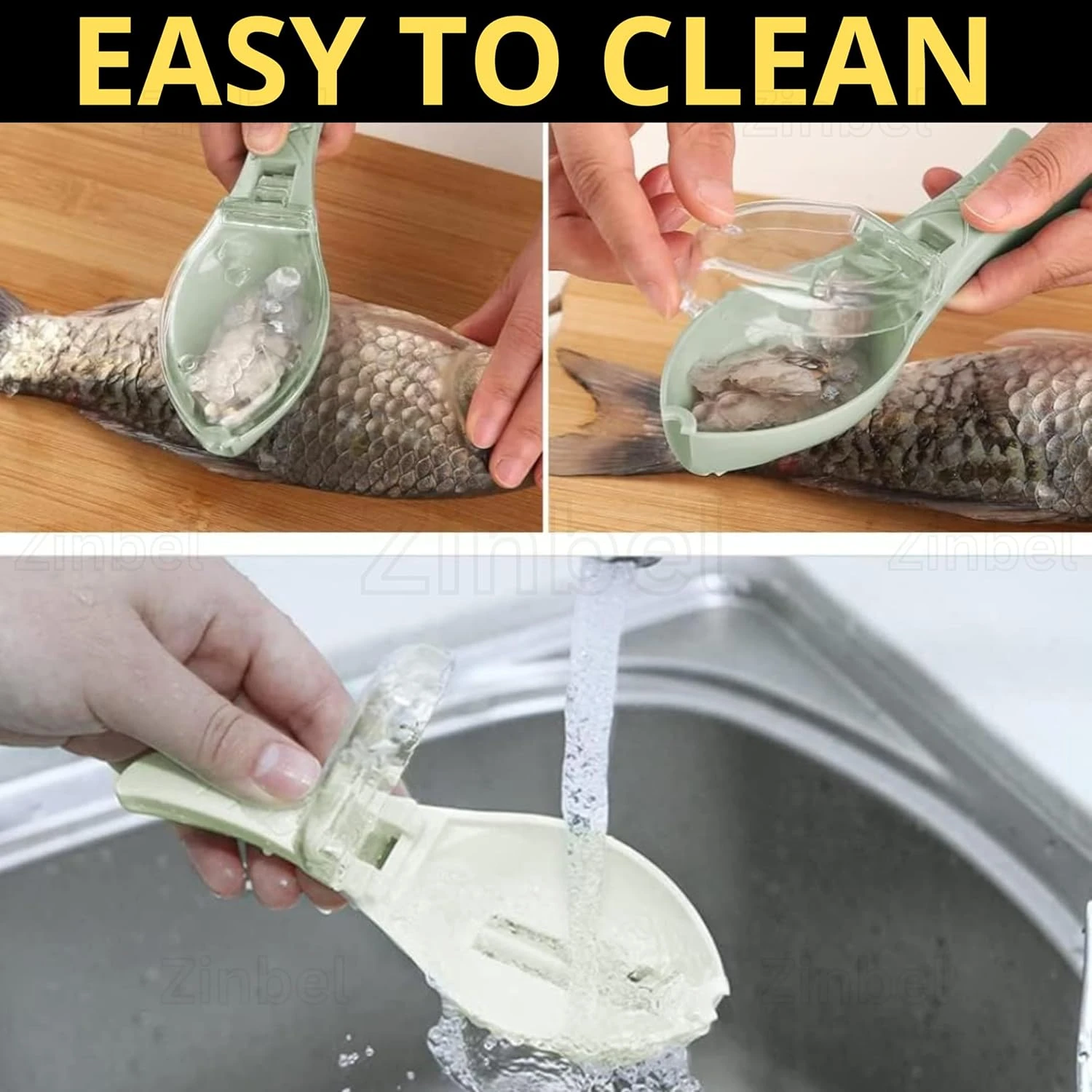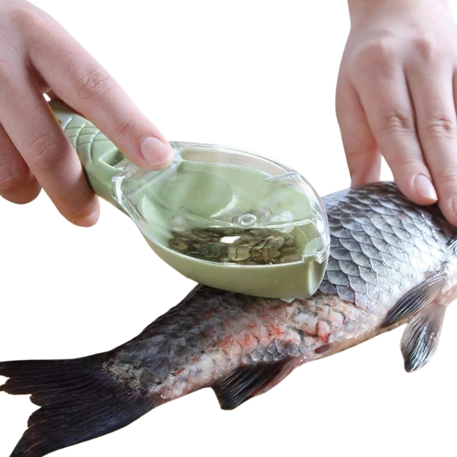 Fish Scale Remover Scraper – Fast Remove Fish Skin Brush, Plastic Fish Scale Cleaner with Outer Cover, Easy Kitchen Cleaning Tool (Green)