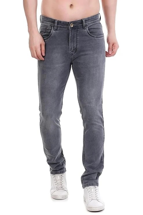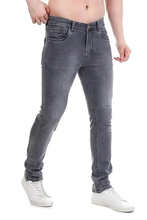 FS Forever Men's Slim Fit Denim Jeans, Medium Blue Wash, Casual Stretch Denim, Tapered Leg