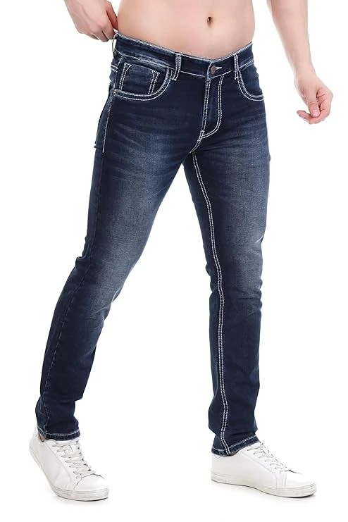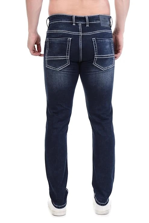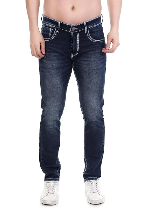 FS Forever Men's Slim Fit Denim Jeans, Medium Blue Wash, Casual Stretch Denim, Tapered Leg