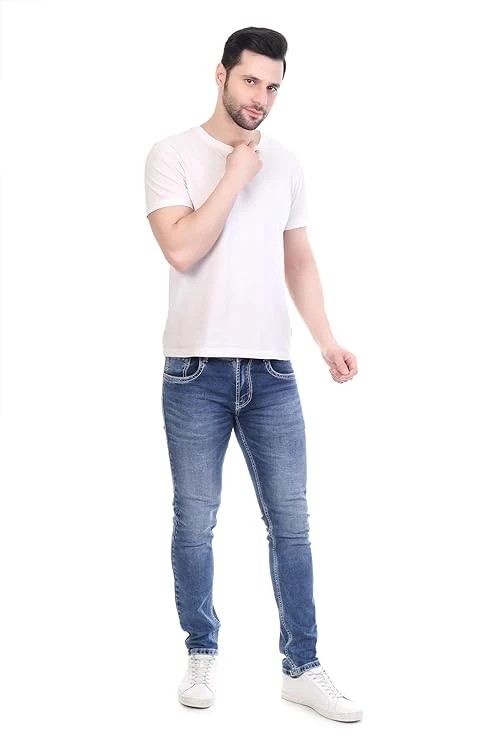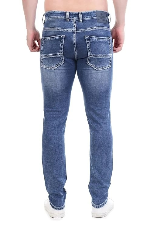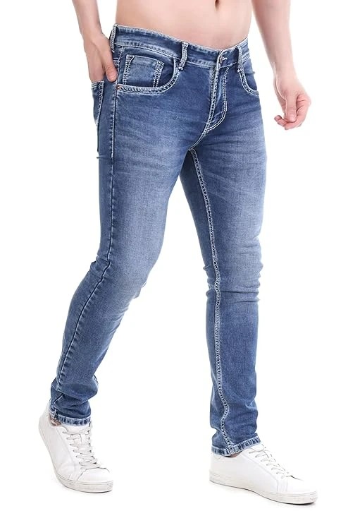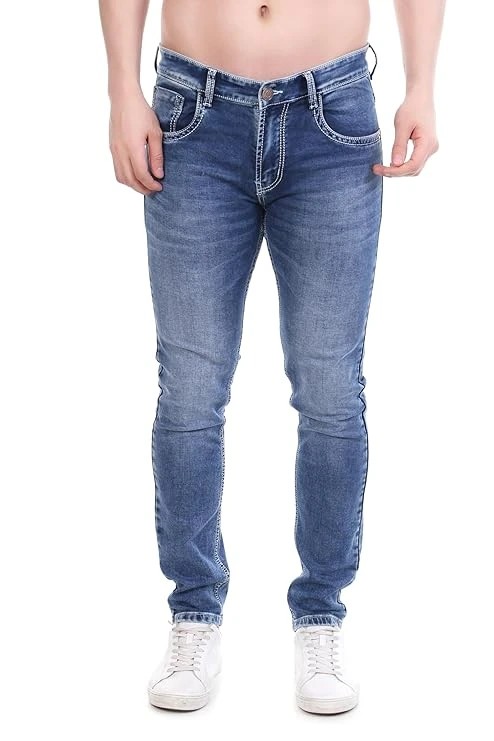 FS Forever Men's Slim Fit Denim Jeans, Medium Blue Wash, Casual Stretch Denim, Tapered Leg