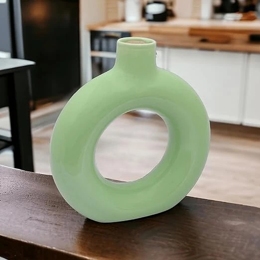 Green Donut Shape Flower Vase | A Unique and Artistic Home Decor Piece | Home Decor | Handcrafted Decorative Vase | Pack of 1