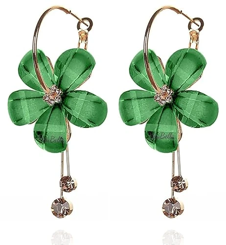 Green Earings Gold Plated Floral Earrings for Girls and Women