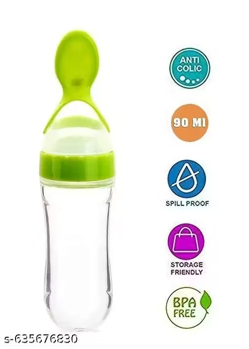 Name: GreenFinch Food Feeder Silicon Anti-Colic Squeeze Feeder Bottle with Spoon for Semi-Solid Food for Infants|Newborns, Soft Silicone Others