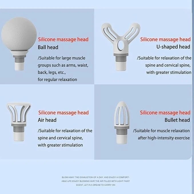 2. 【4 MASSAGE HEADS】: Round Head, Bullet Massage Head, Flat Massage Head, Fork Massage head