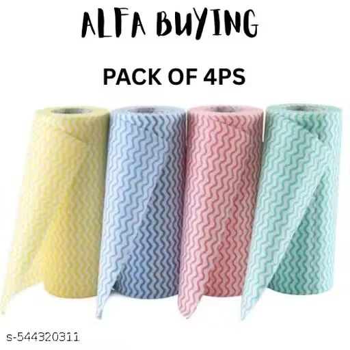 Alfa buying Non-Woven Reusable Kitchen Towel Roll - Pack of 4 Rolls (80 Pulls Per Roll, 320 Sheets) | Multipurpose Kitchen Roll/Tissue/Towel Washable & Quick-Dry